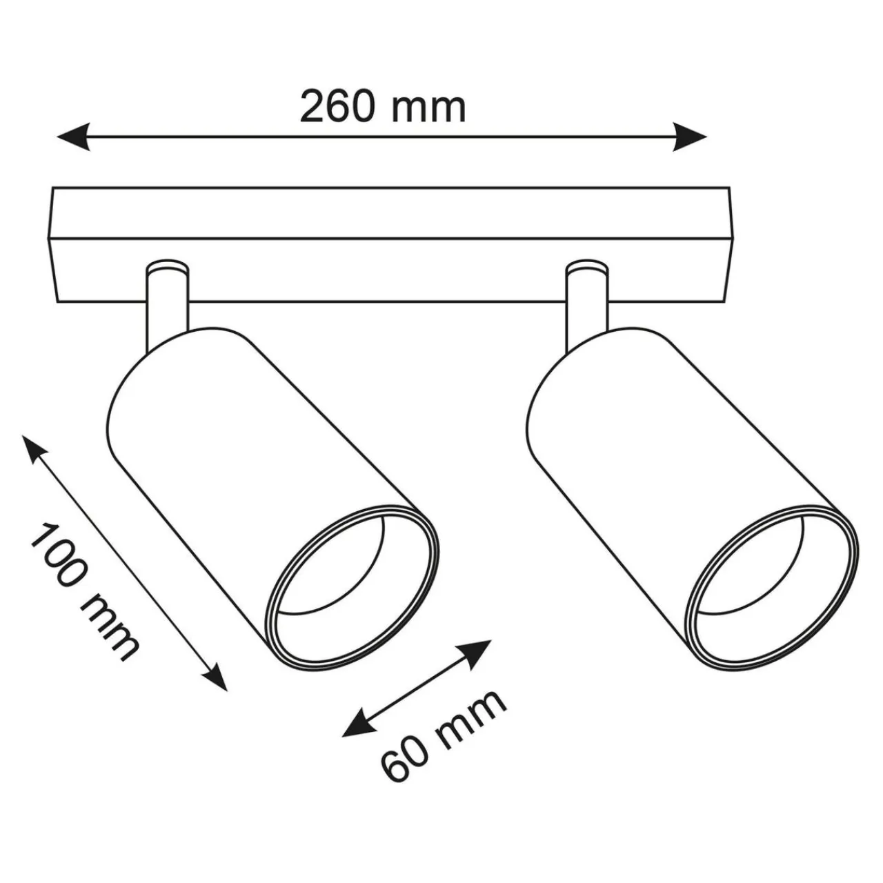 Listwa 2-punktowa MARIBEL posiada oprawę przeznaczoną dla 2 żarówek typu GU10 o mocy maksymalnej 10W.