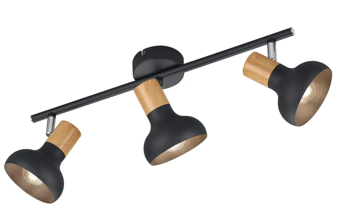 Ozdobna część wykonana w kolorze jasnego drewna doskonale komponuje się z ciepłą kolorystyką mebli oraz dodatków dekoracyjnych, którą dodatkowo podkreślą baza i klosze w czarnym, matowym kolorze.