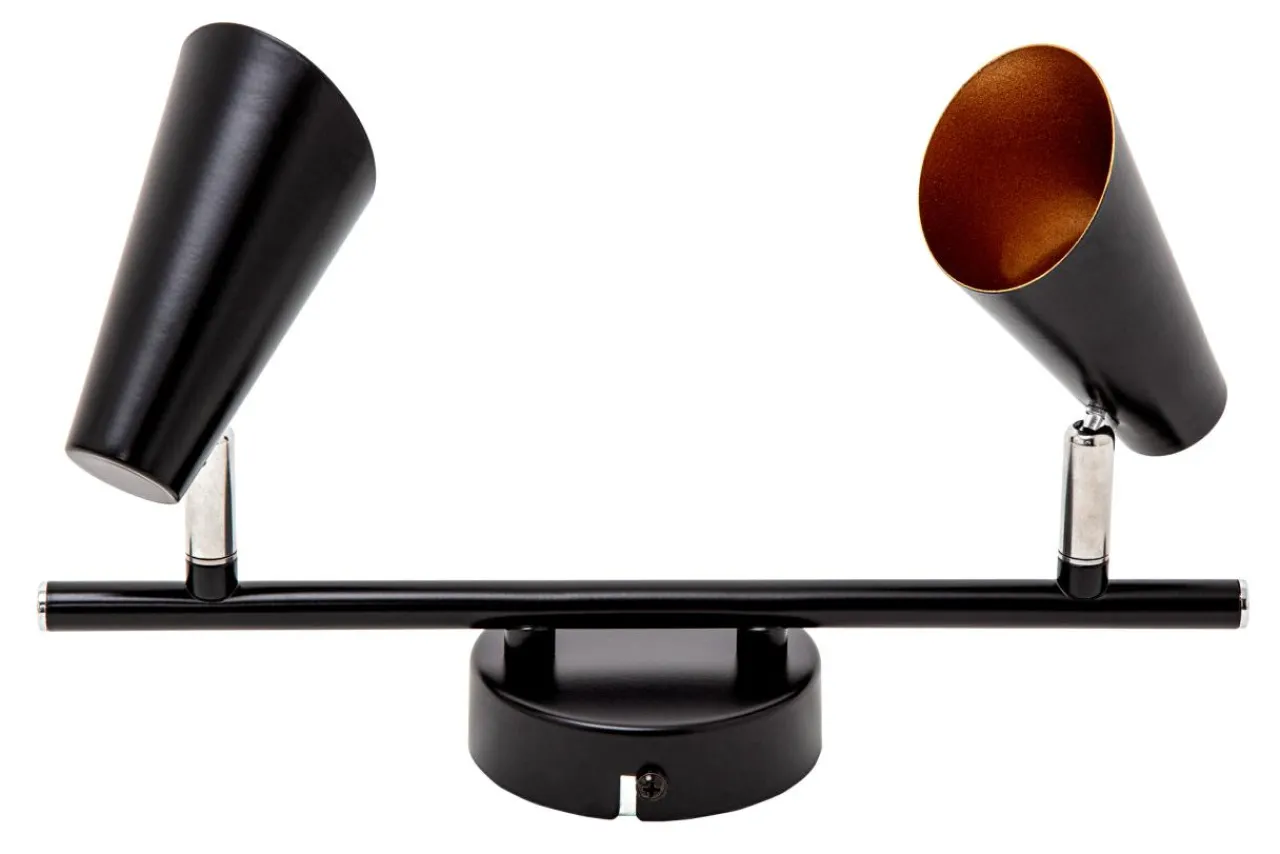Zwróć uwagę na starannie wymodelowany klosze w czarno-złotym kolorze, chromowane wykończenia oraz trwałe, stalowe komponenty.