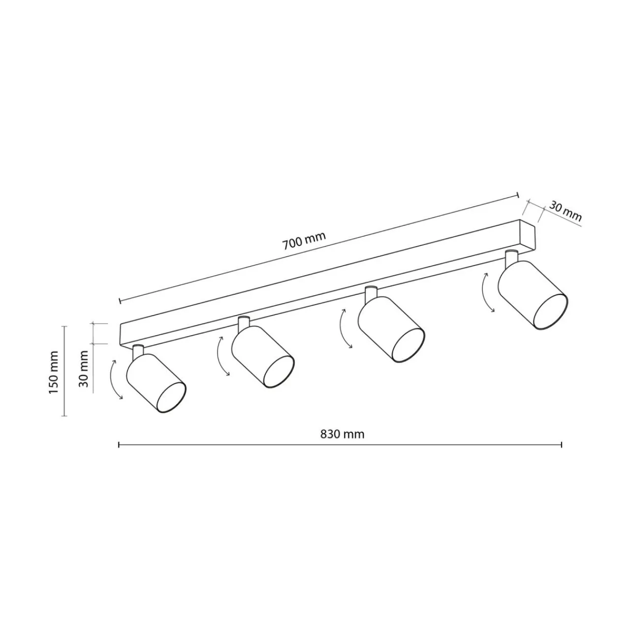 Ten model lampy TOP posiada oprawę dla 4 żarówek LED typu GU10 o mocy maksymalnej 10W.