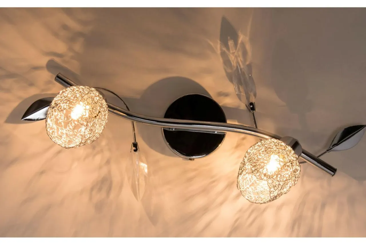 Bardzo urokliwie prezentuje się zarówno jako oświetlenie przedpokoju, jak również w salonie, jadalni, sypialni oraz gabinecie. Posiada metalową, wykończoną chromem podstawę zdobioną charakterystycznym motywem roślinnym. Całość zdobią dwa klosze z akrylu w kształcie kwiatów o rozchylonych płatkach. Jego ozdobny charakter sprawia, że świetnie wygląda w połączeniu z klasycznymi wnętrzami utrzymanymi w jasnej kolorystyce.
