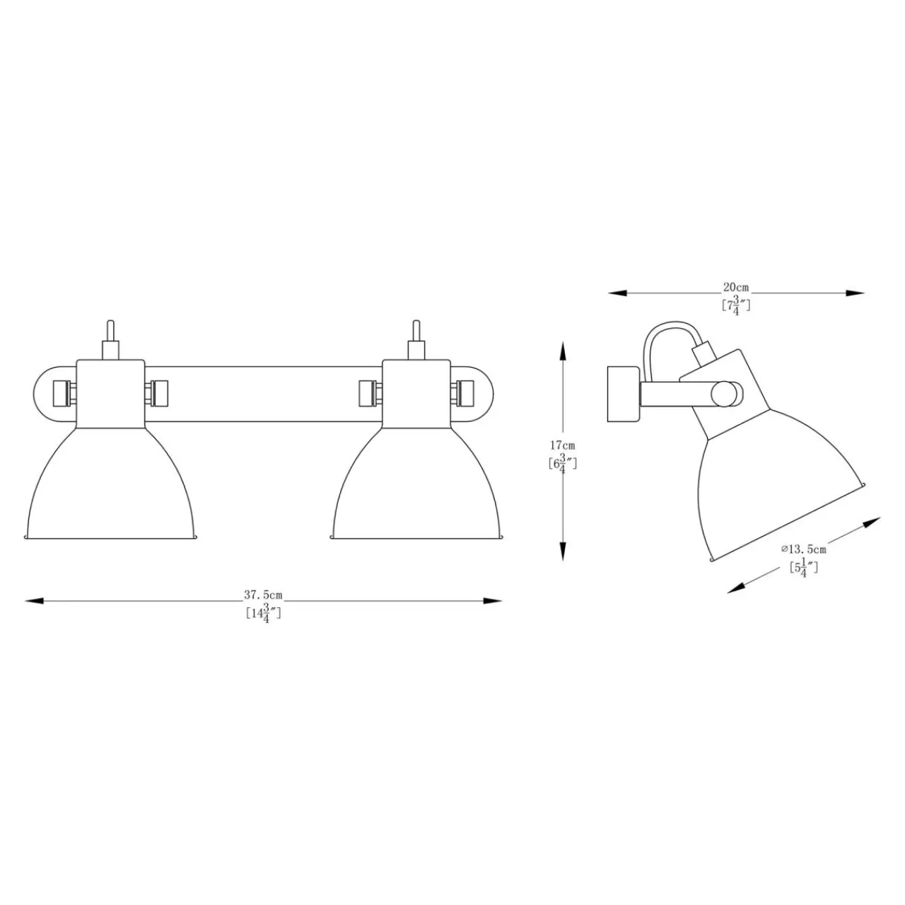 Lampa DELTA posiada oprawę dla 2 żarówek typu E27 o mocy maksymalnej 40W.