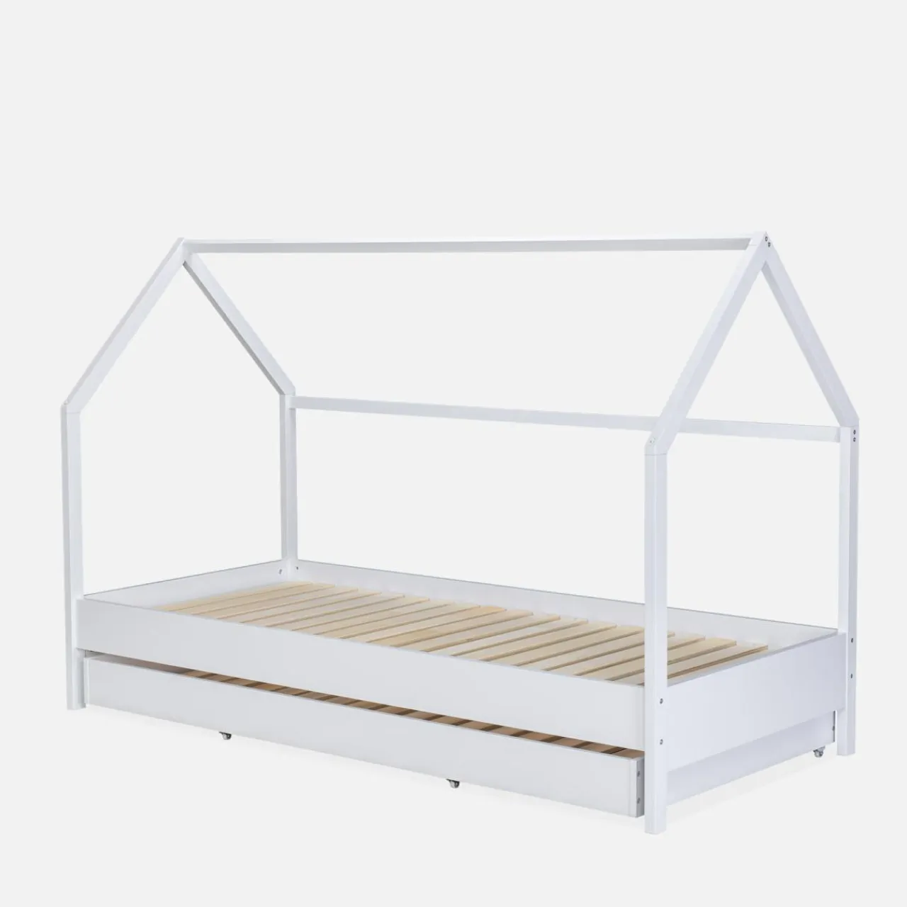 Odpowiednie do małego pokoju i idealne dla rodzeństwa – takie jest łóżko FABELA. Wyglądem przypomina ramę domu, więc pomoże stworzyć urokliwy kącik do spania dla dwójki dzieci.Powieście na nim koc lub prześcieradło – zamieńcie zwykłe łóżko w kryjówkę na przytulanki i pozostałe zabawki.