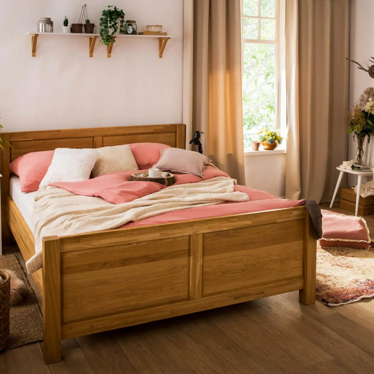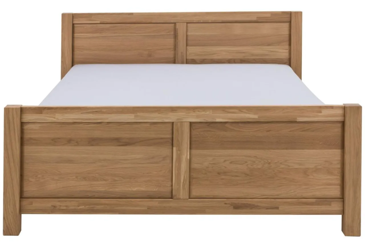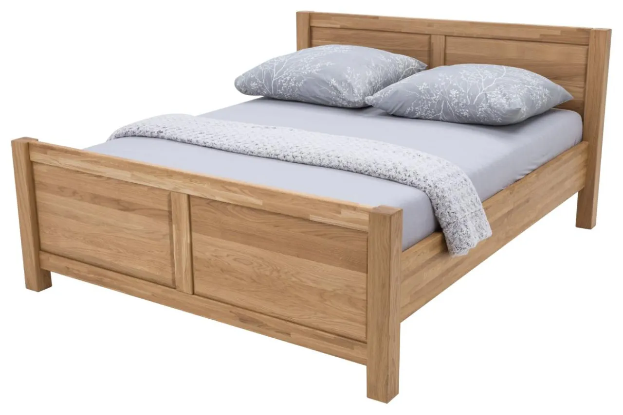 Łóżko zostało zabezpieczone jasnym olejem, który podkreśla naturalne piękno struktury drewna.