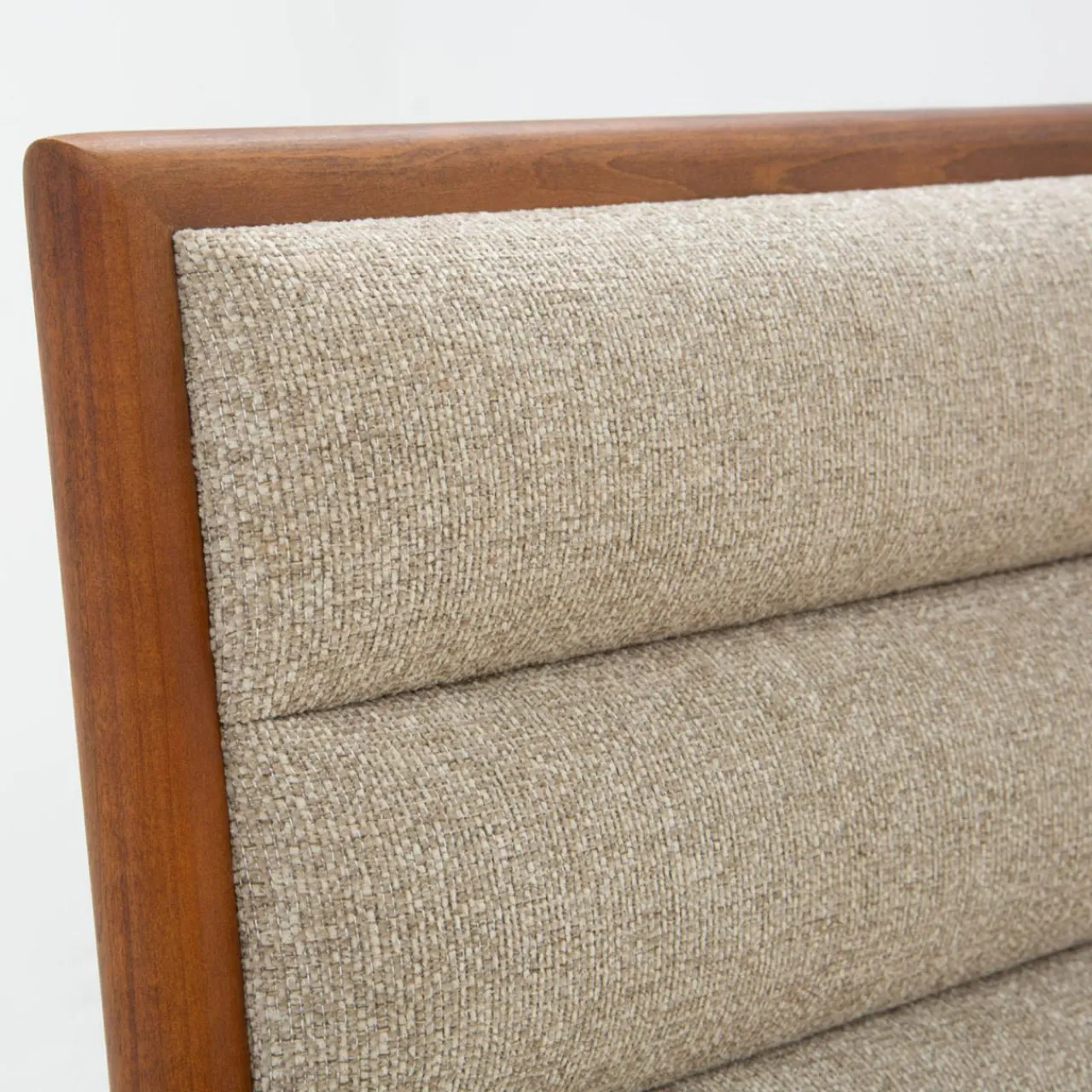- Tapicerowana część wykonana jest z beżowej tkaniny.