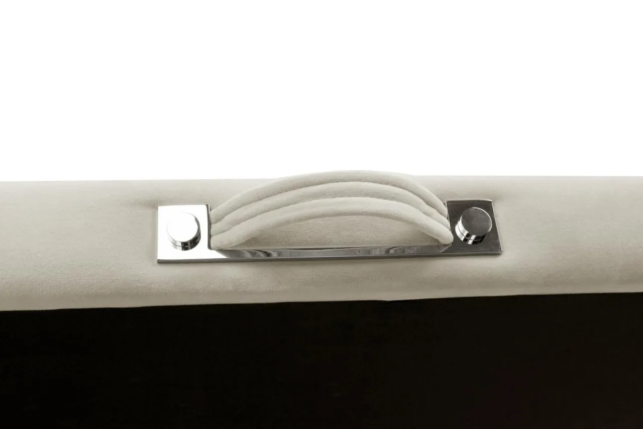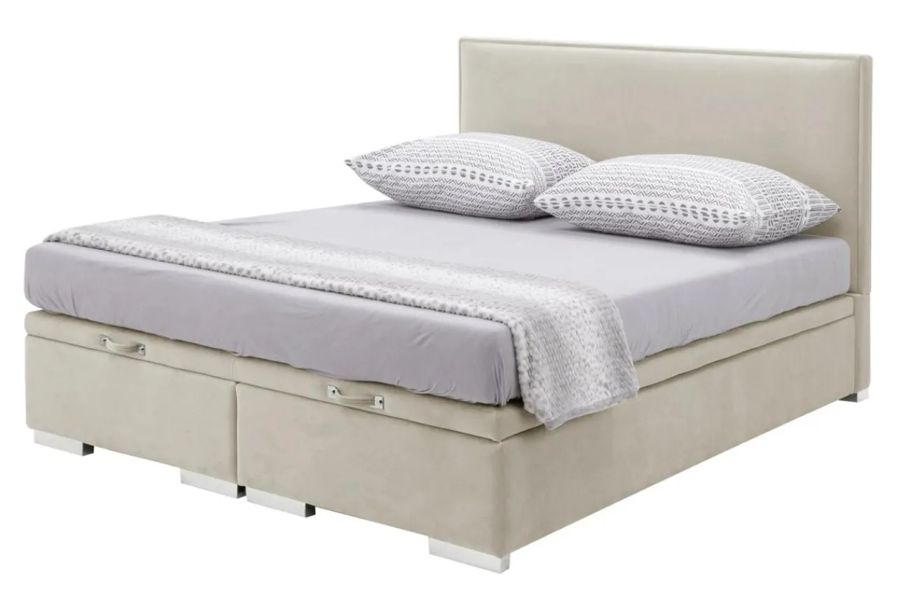 Tapicerowana rama oraz wezgłowie gwarantują wyjątkową aranżację sypialni, a uniwersalne wybarwienie tkaniny pozwala na zestawienie mebla z dowolną kolorystyką pomieszczenia.