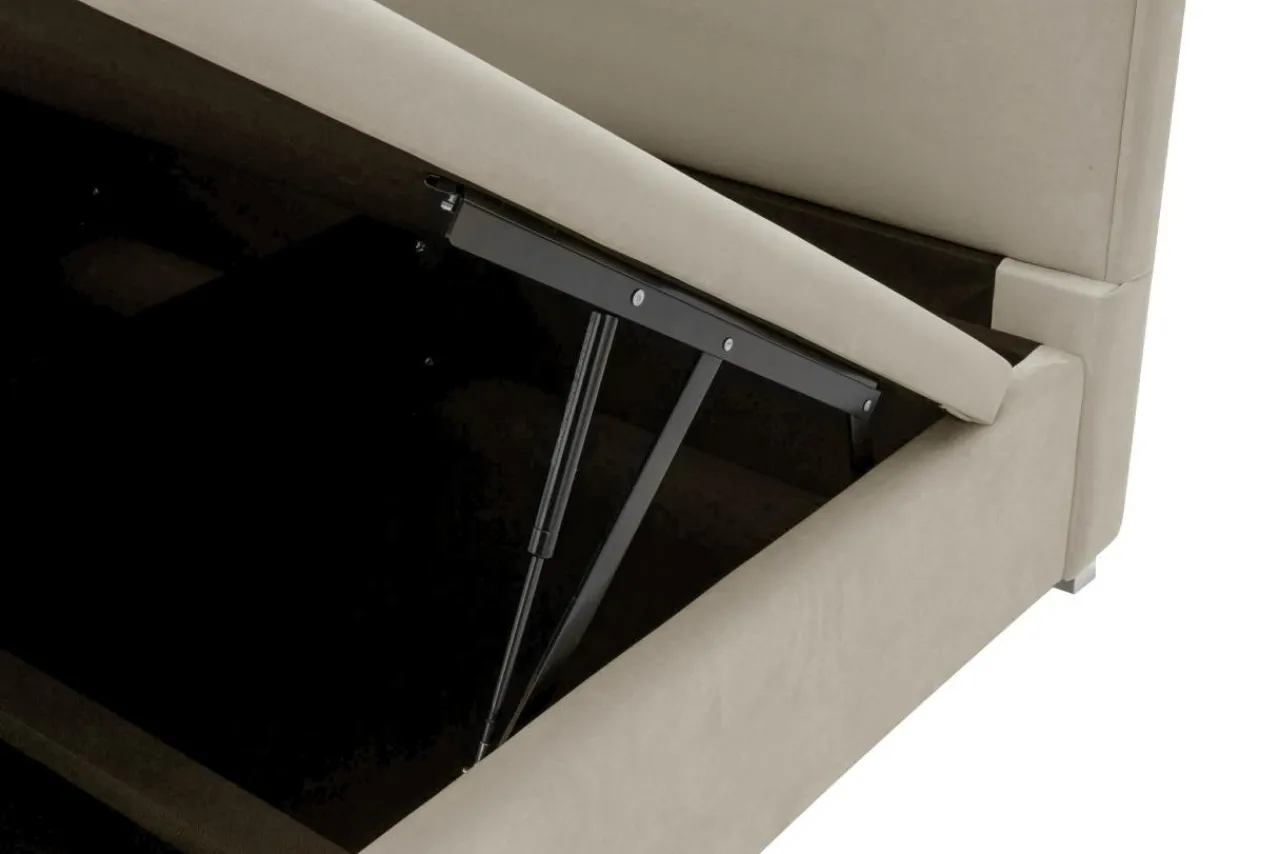 Łóżko posiada pojemnik, w którym pomieścisz komplet pościeli, koce i poduszki. Dostęp do niego uzyskasz po uniesieniu stelaża. Wysokość pojemnika wynosi 25 cm.