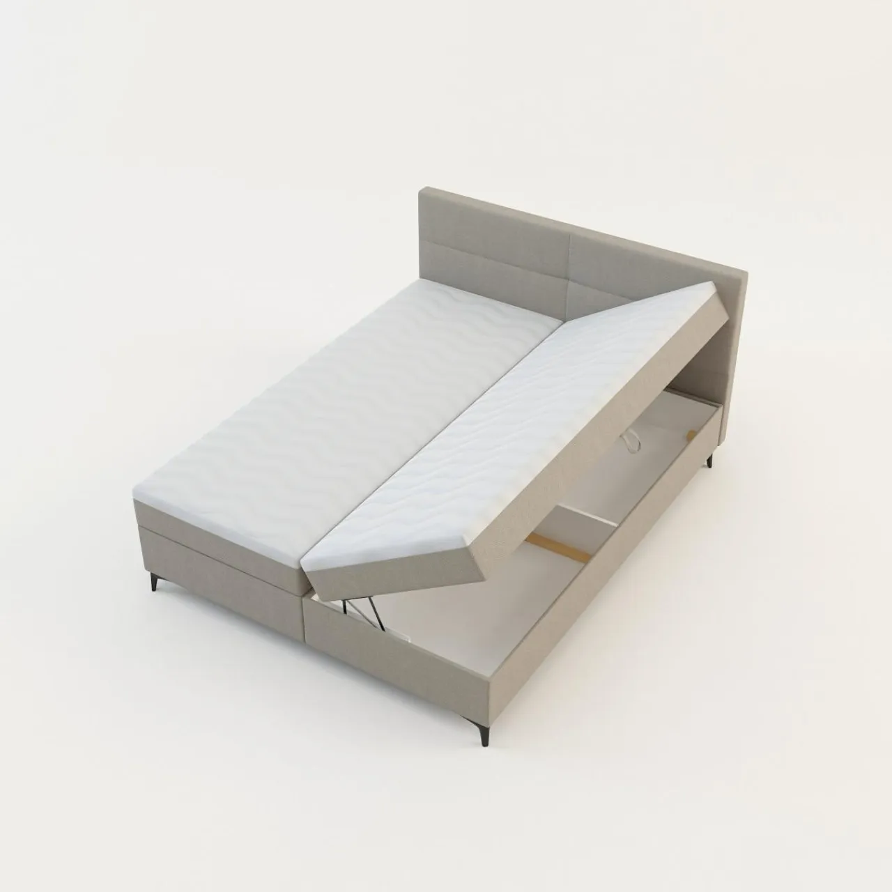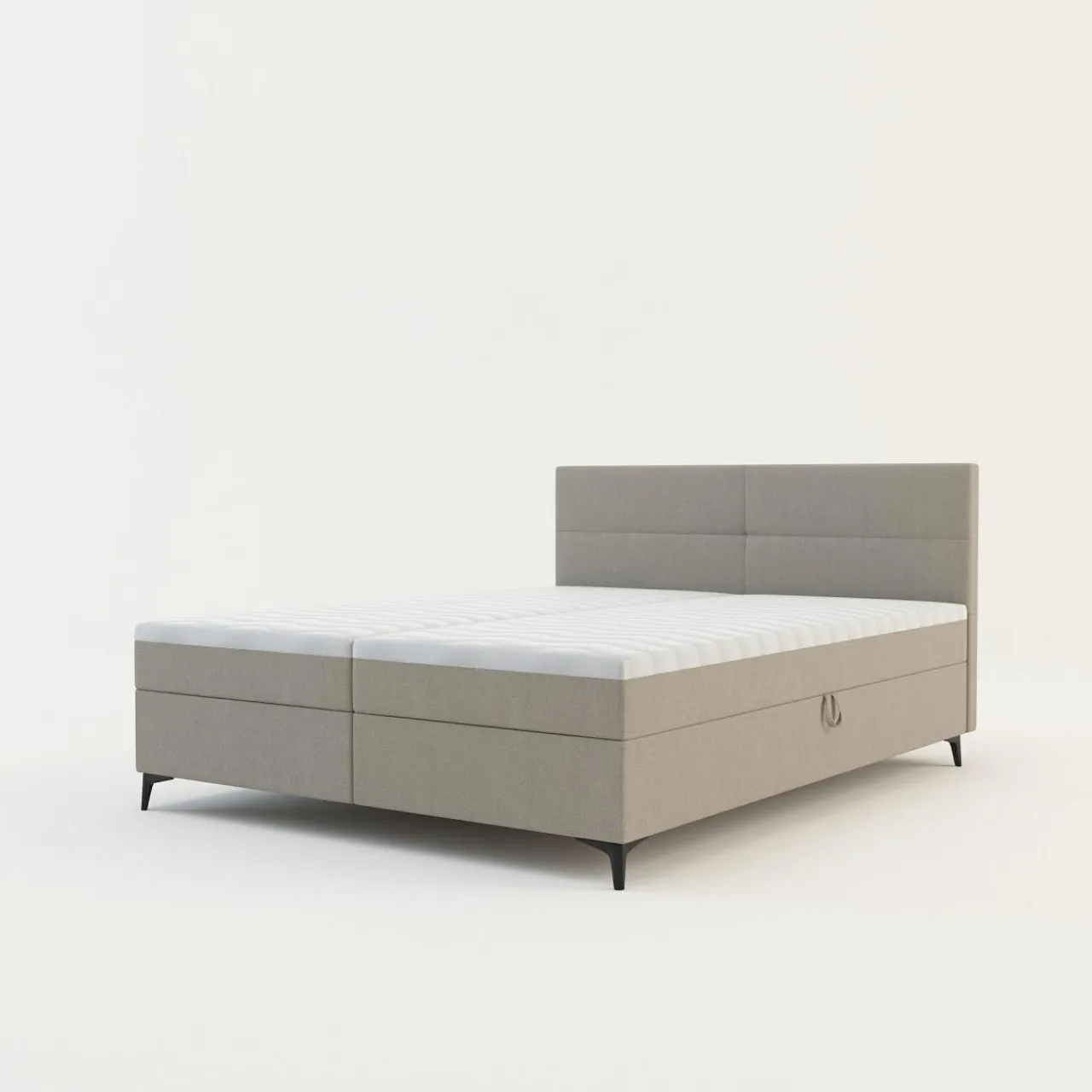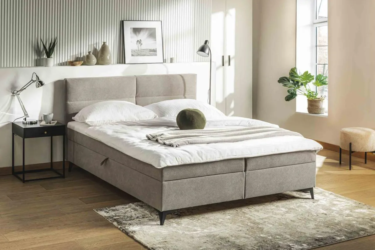 Beżowa tkanina, którą pokryto łóżko kontynentalne MARY wprowadzi do wnętrza kojącą atmosferę, która pozwoli Ci na głęboki oddech po zabieganym dniu.