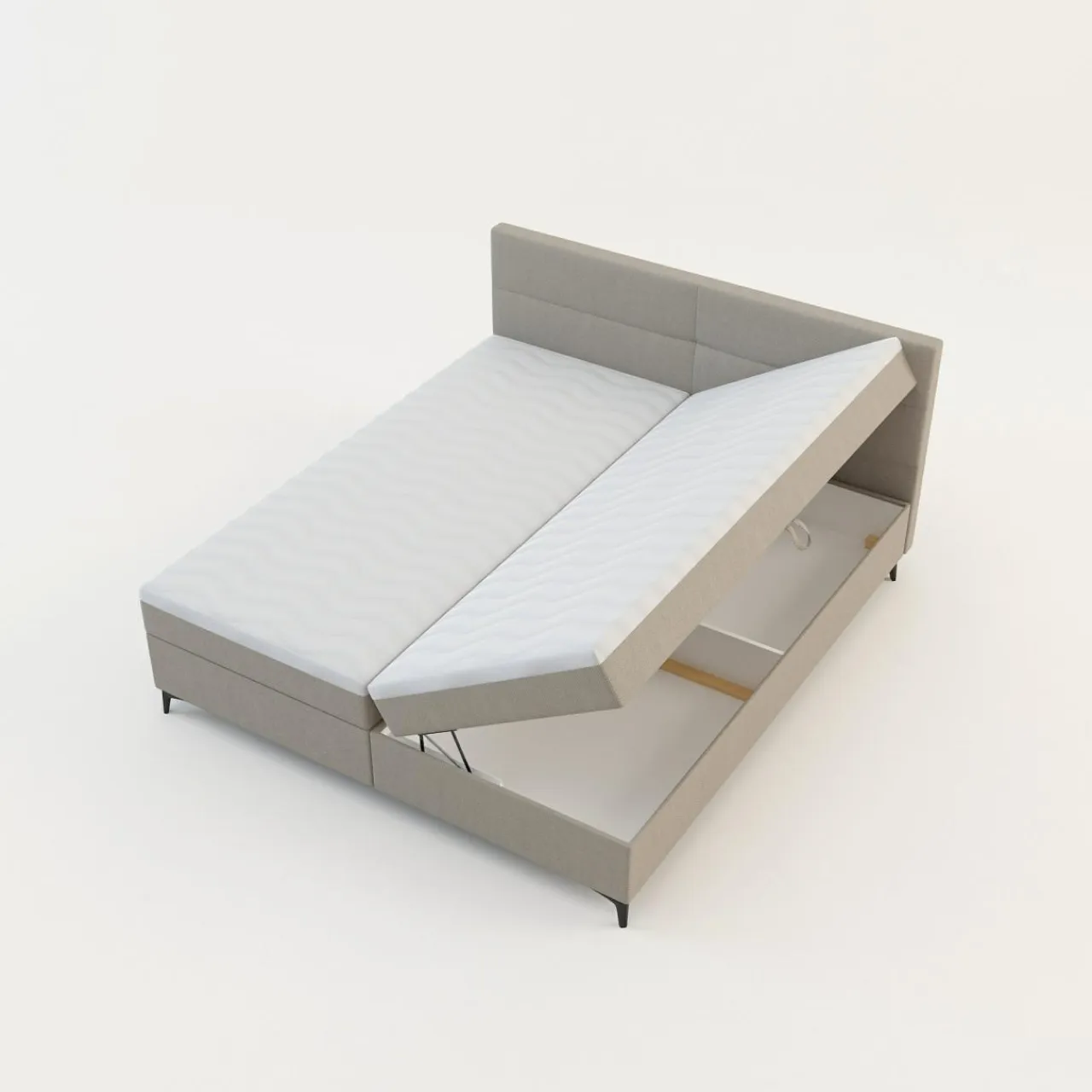 Beżowa tkanina, którą pokryto łóżko kontynentalne MARY wprowadzi do wnętrza kojącą atmosferę, która pozwoli Ci na głęboki oddech po zabieganym dniu.