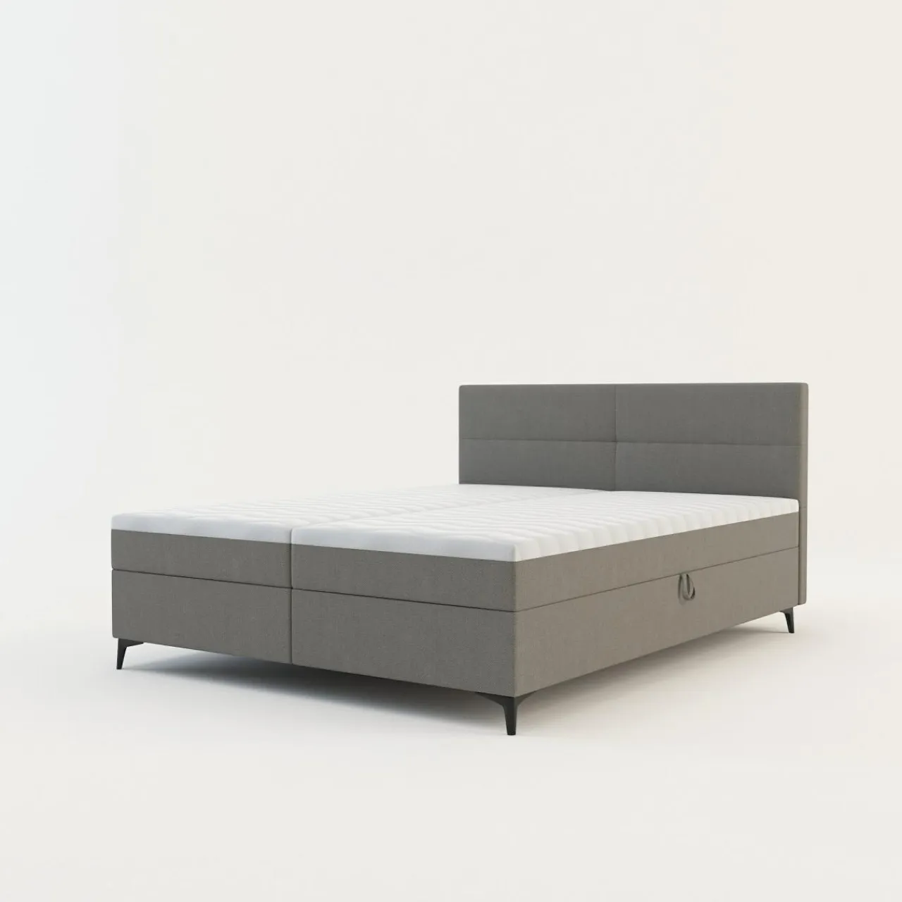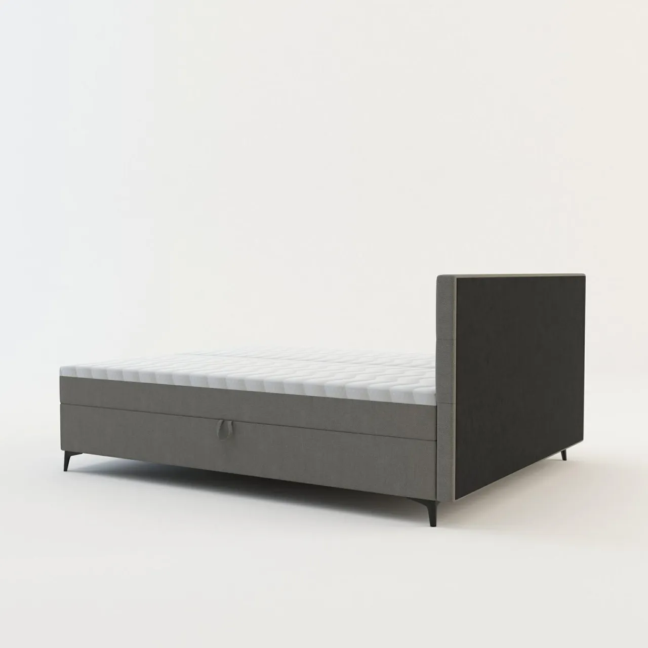 - Boki materaca zostały pokryte tą samą tkaniną co rama łóżka, przez co całość prezentuje się estetycznie.