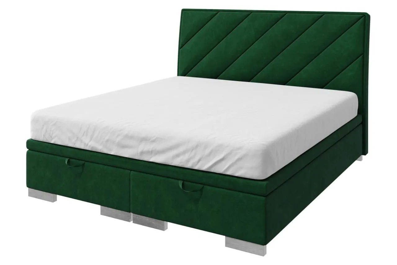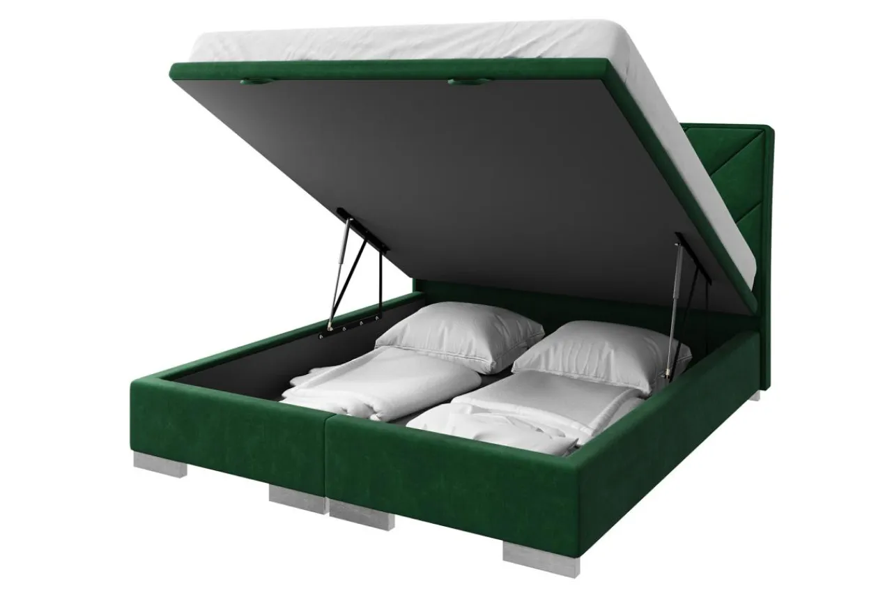 - Łóżko zostało wykończone tkaniną MAGIC VELVET w butelkowej zieleni.