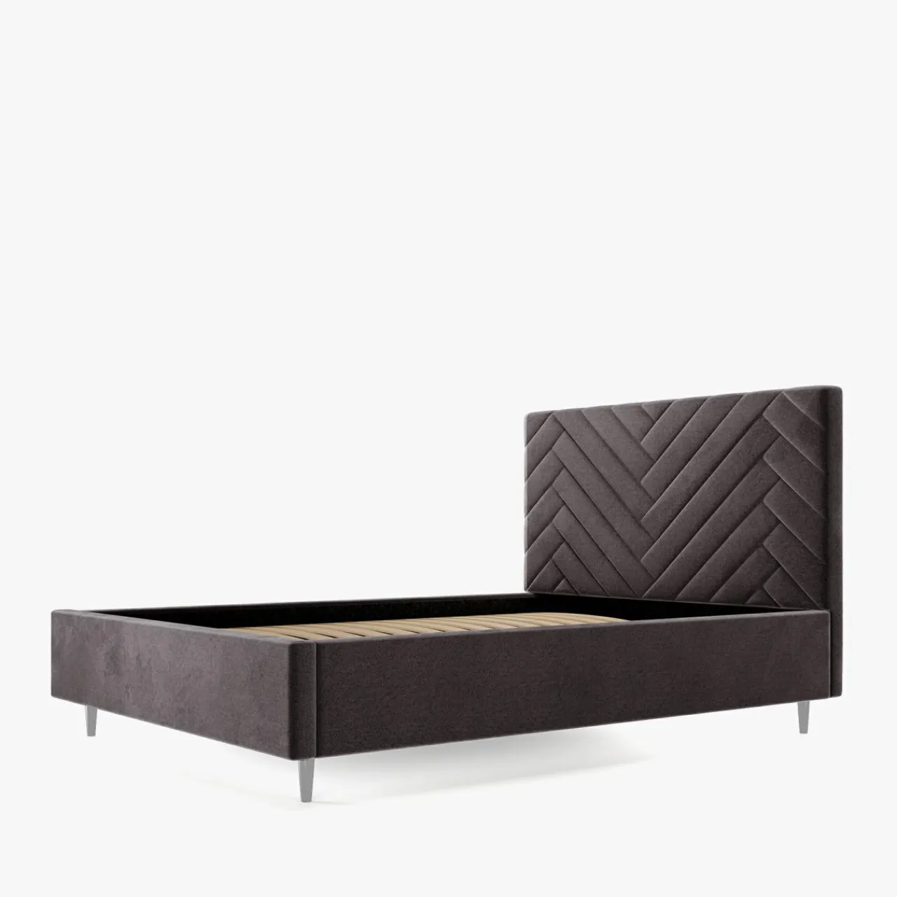 - Łóżko jest wyposażone w tapicerowaną ramę oraz stelaż, które stworzą komfortową powierzchnię spania dla 2 osób.