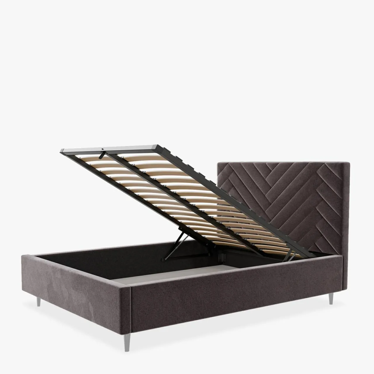 - Pojemnik pod stelażem da Ci przestrzeń, w której przechowasz pościel i inne domowe tekstylia. Dostęp do niego ułatwi Ci podnośnik gazowy.