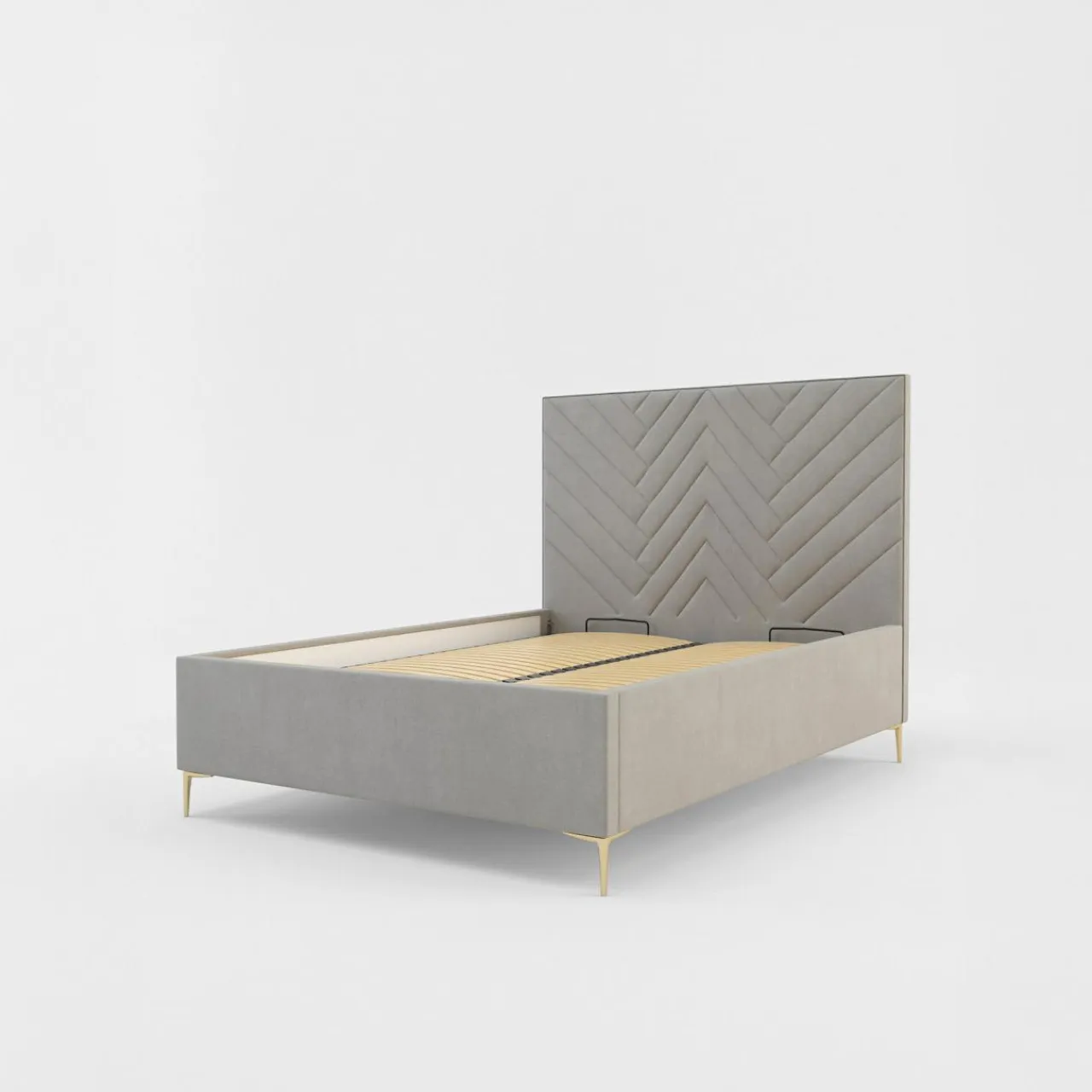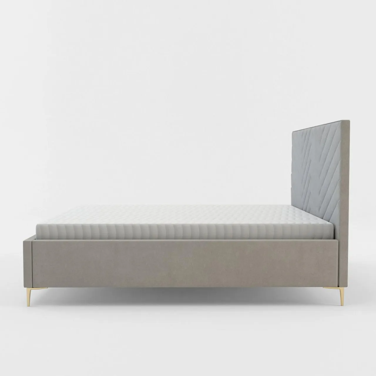 - Łóżko PINO ma charakterystyczne stalowe nóżki w pięknym, złotym kolorze i eleganckiej, szczotkowanej strukturze.
