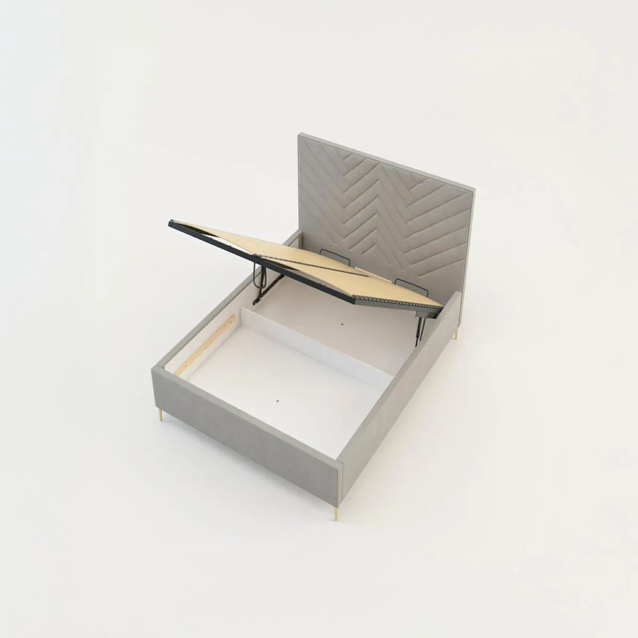 - Łóżko ma pojemnik na pościel o pojemności 960 l, przez co bez problemu pomieści Twoje poduszki oraz koce.