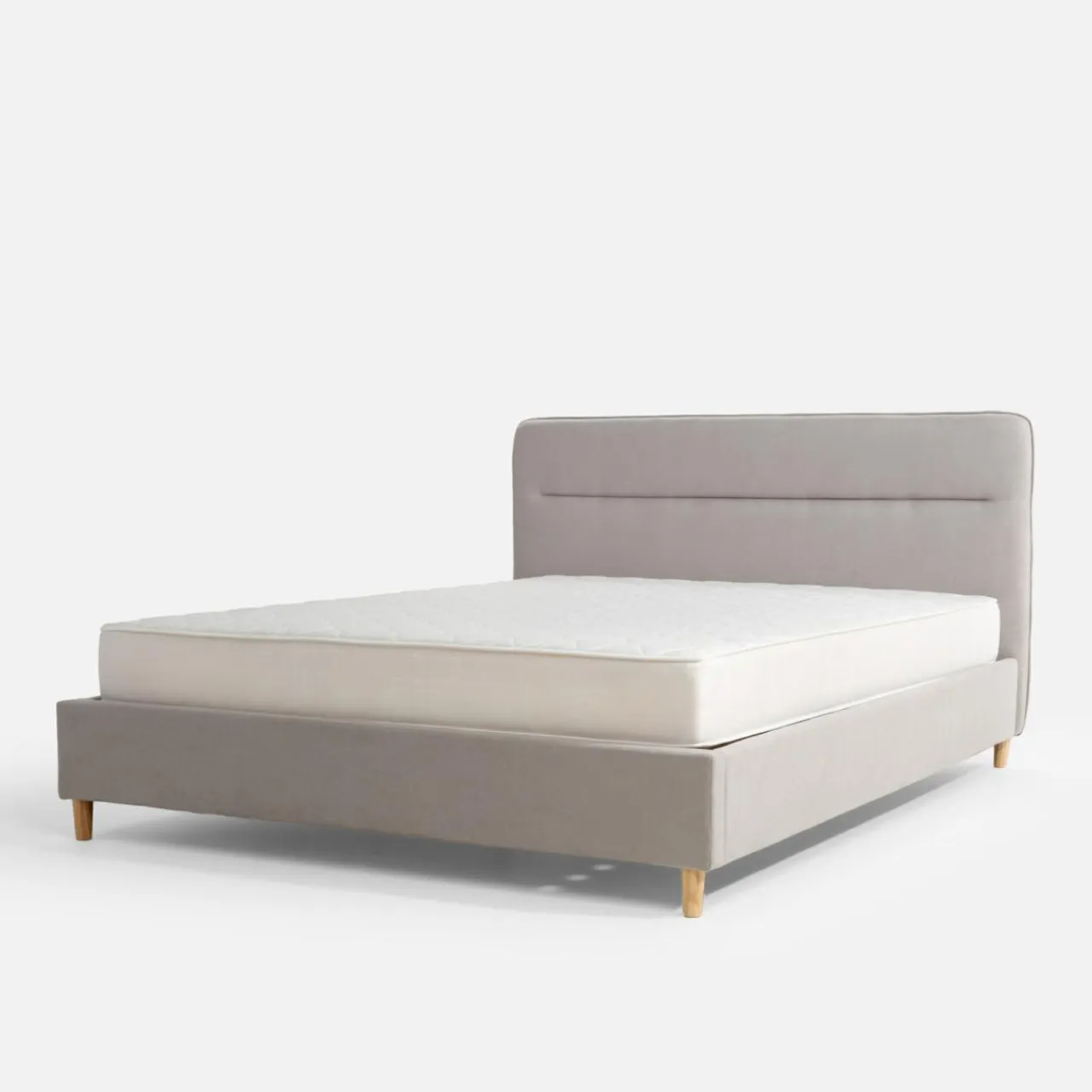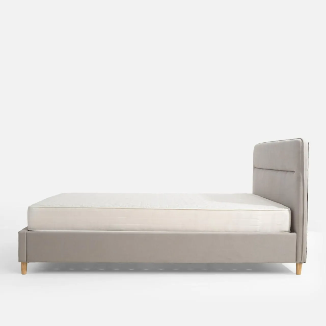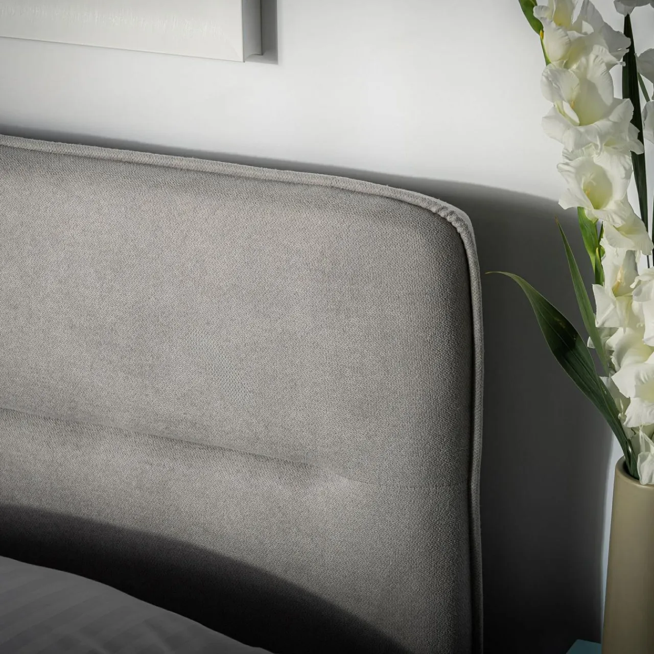 - Ozdobne przeszycie na wezgłowiu podkreśla miękką tkaninę obicia.