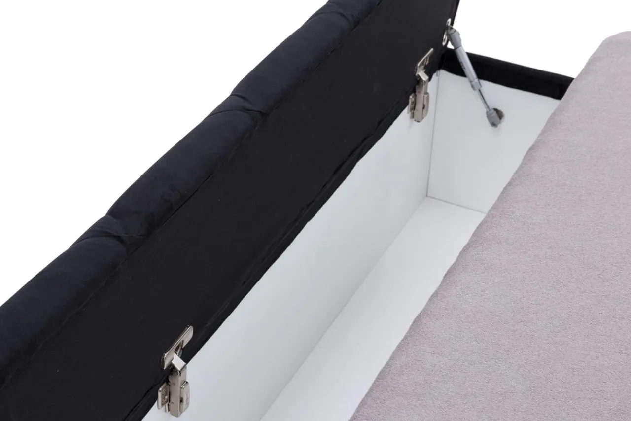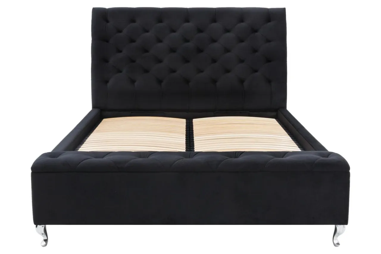 Tapicerowane łóżko z siedziskiem VELMA FULL to doskonały wybór do sypialni urządzonej w stylu glamour czy nowoczesnym. Czarna, welurowa tapicerka pomoże stworzyć w sypialni wyjątkowy nastrój.