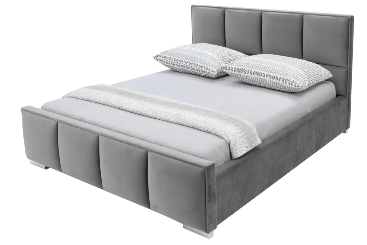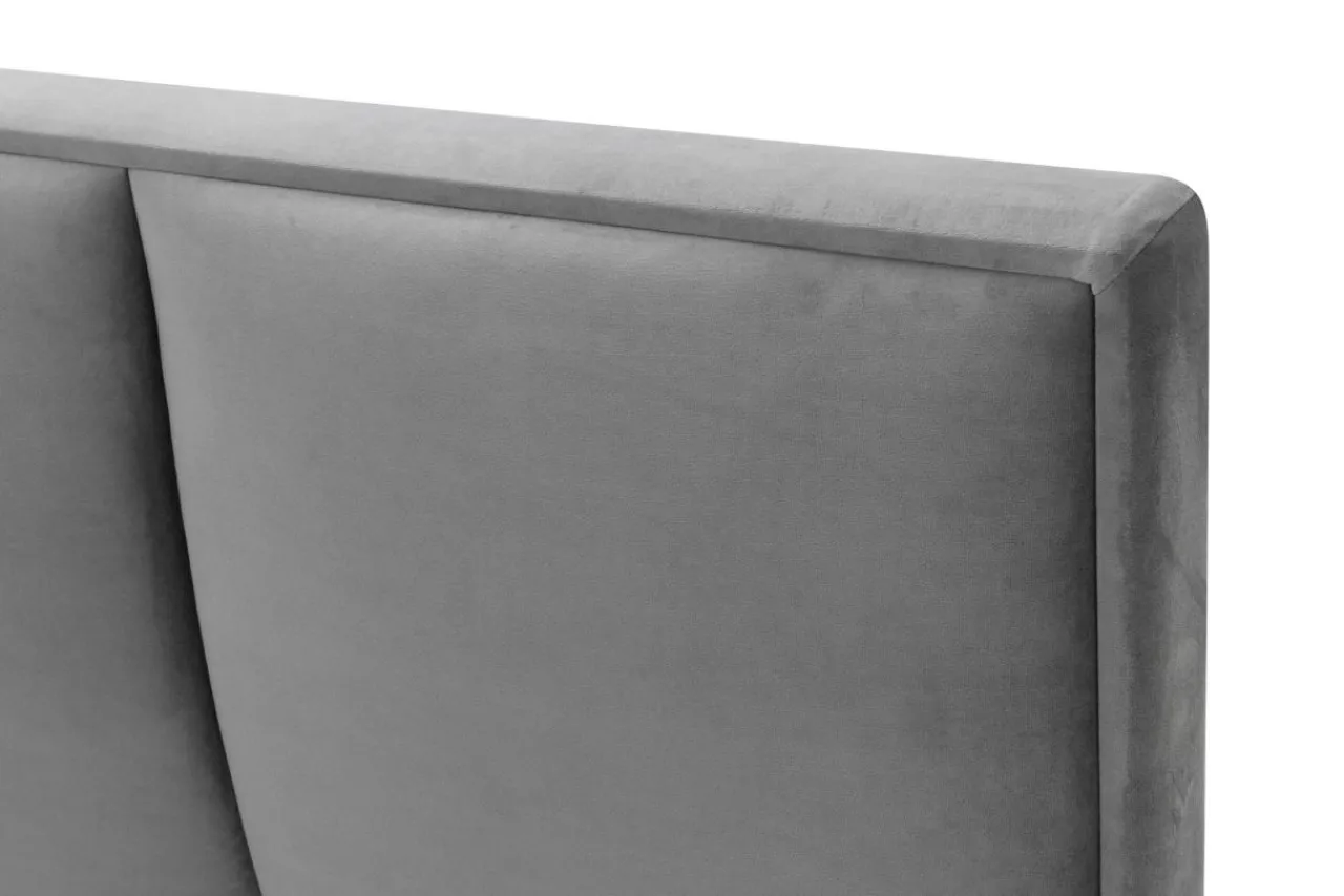 Szara tapicerka oraz pikowanie na wezgłowiu to detale nadające meblowi ekskluzywny wygląd.