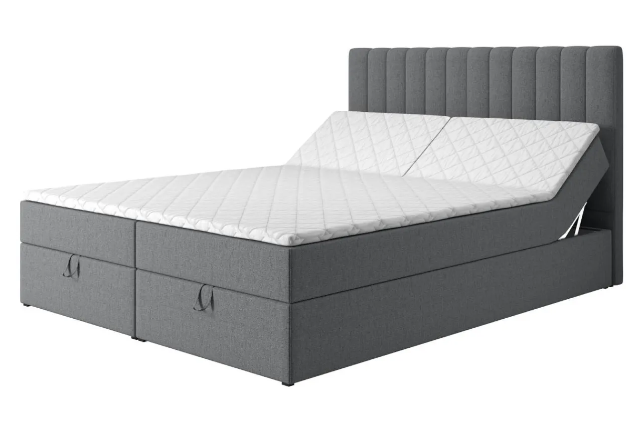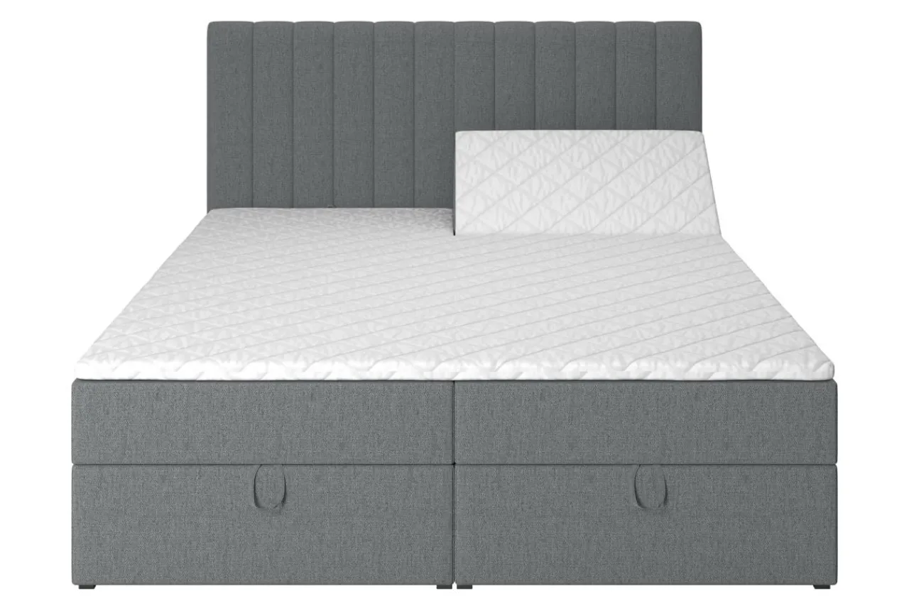 Łóżko jest pokryte tkaniną MATANA o wyrazistym splocie i przyjemnej w dotyku strukturze.