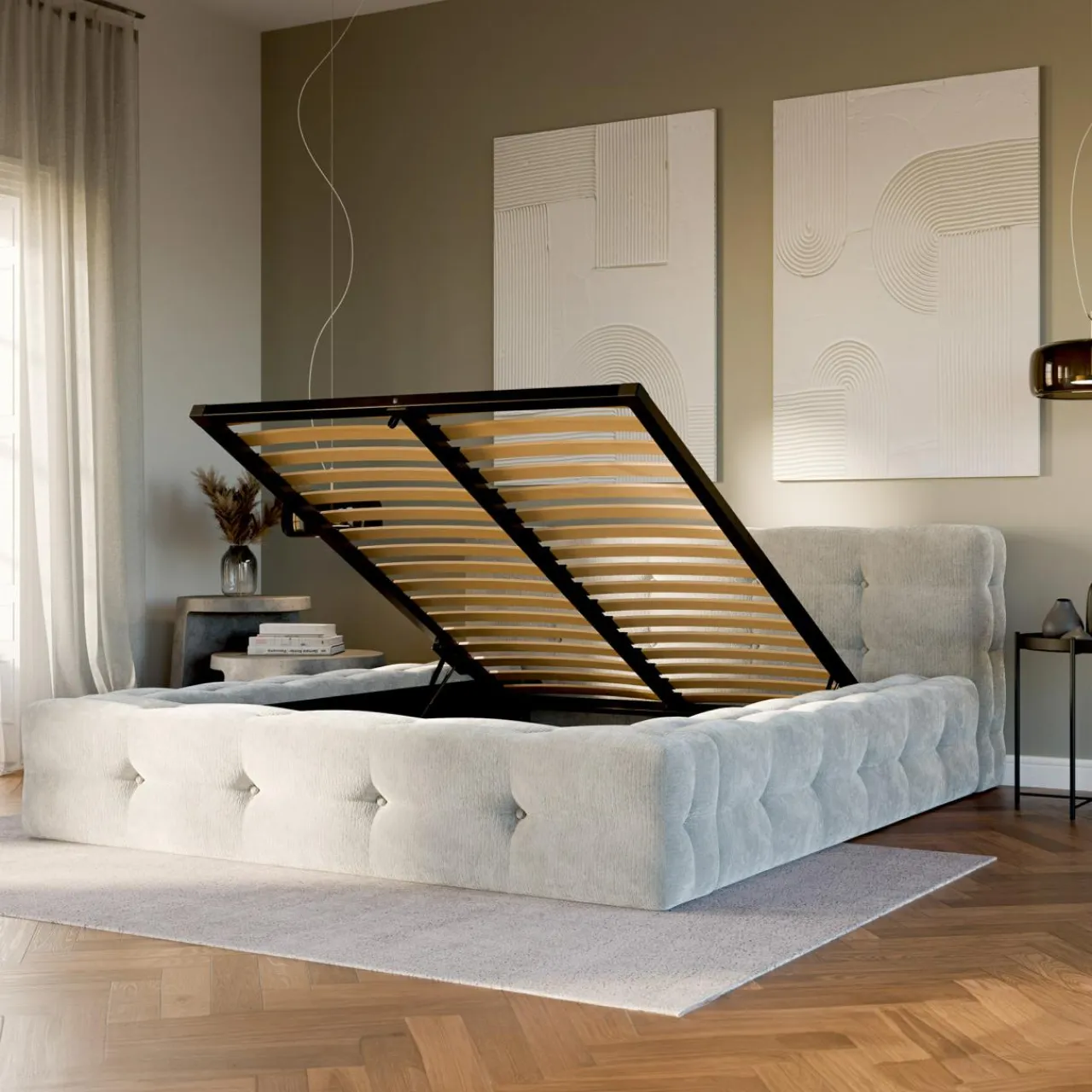 - Pojemnik pod stelażem da Ci wygodna przestrzeń na pościel i inne domowe tekstylia.