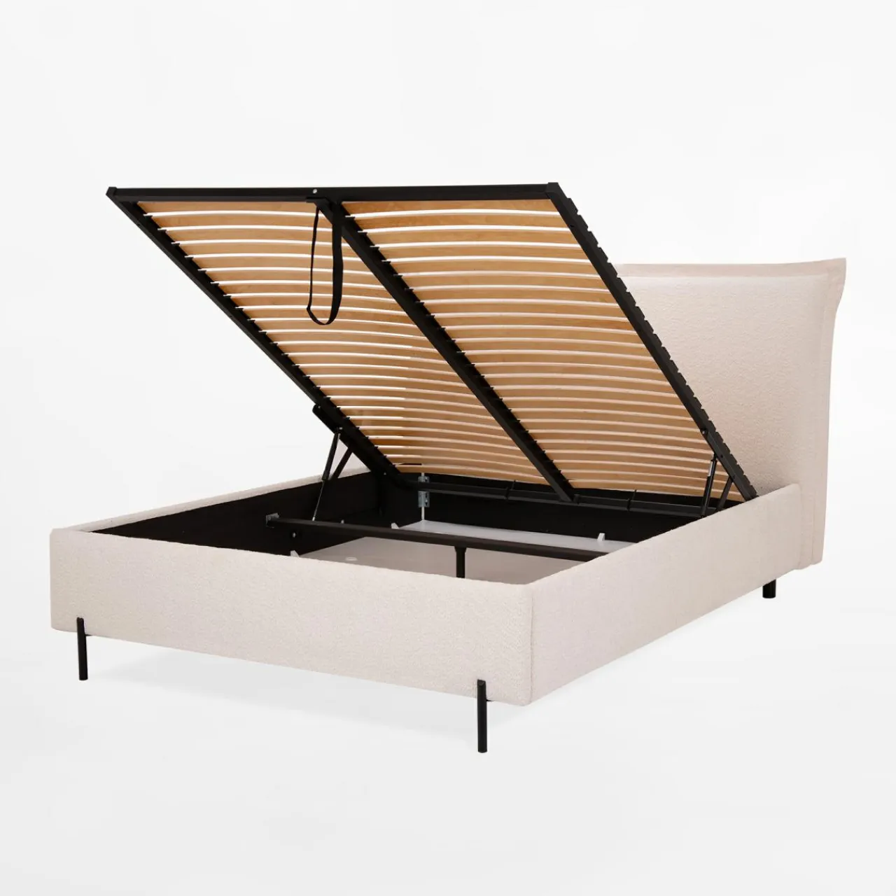 - Pod stelażem znajduje się pojemnik na pościel, który z powodzeniem wykorzystasz do przechowywania pościeli, kocy czy poduszek.