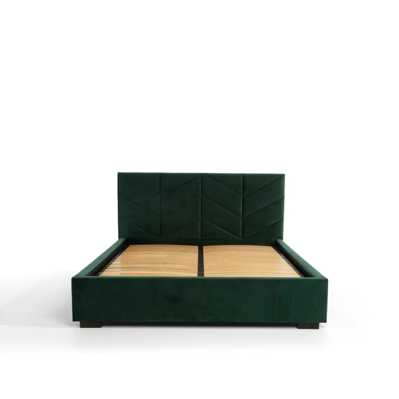 - Łóżko jest wyposażone w tapicerowaną ramę oraz stelaż, które stworzą komfortową powierzchnię spania dla 2 osób.