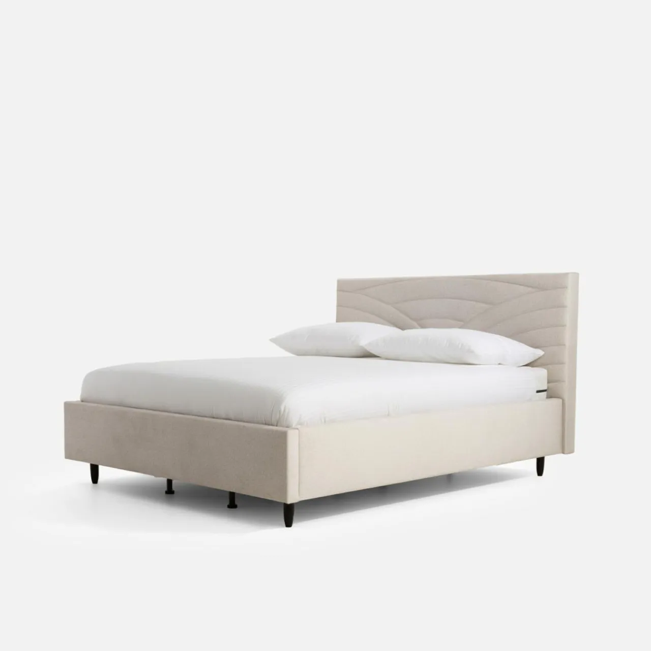 - Łóżko jest wyposażone w tapicerowaną ramę oraz stelaż, które stworzą komfortową powierzchnię spania dla 2 osób.