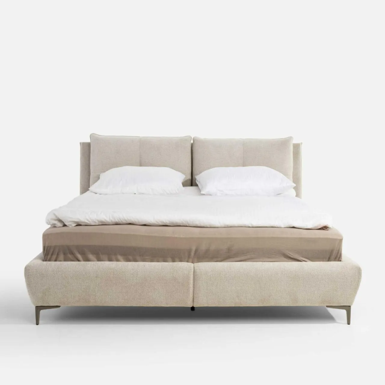Marzy Ci się minimalistyczna sypialnia? Łóżko AURA w kolorze chłodnego beżu wpisze się w jasny wystrój sypialni. Docenisz je za wysokie nóżki, które ułatwią Ci codzienne porządki.