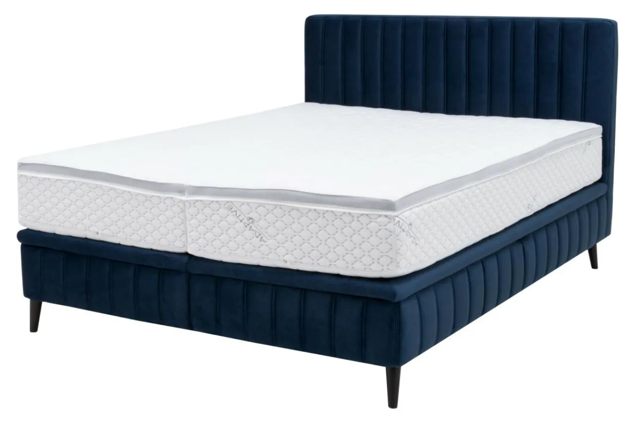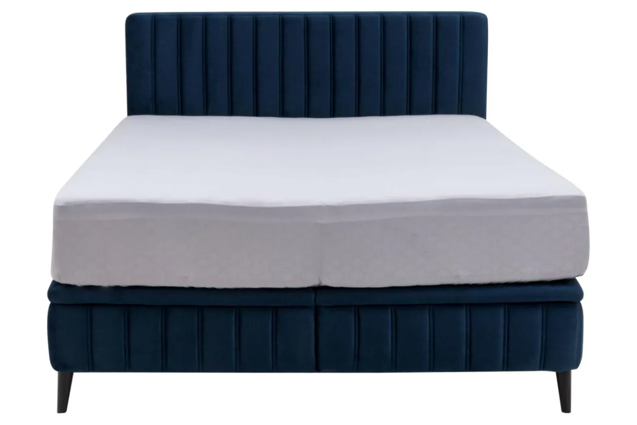 Szukasz gotowego rozwiązania do eleganckiej sypialni? Lubisz otaczać się przyjemnymi w dotyki tkaninami i barwami o intensywnych odcieniach? Zachwyci Cię łóżko kontynentalne CAYA, bo jest wyposażone w wygodny materac i pokryte granatową, welurową tkaniną.