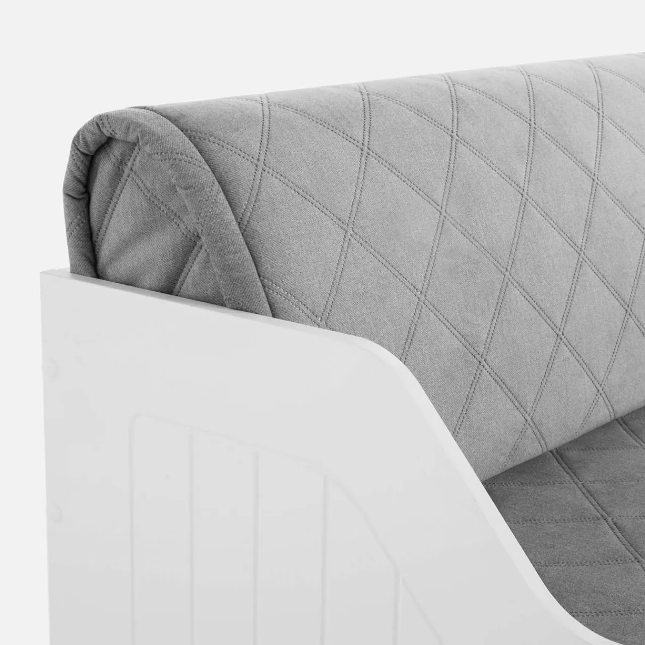 - Zabudowane boki i poduszki na oparciu ochronią ścianę przed zabrudzeniami, dzięki czemu łóżko może pełnić też funkcję wygodnej sofy.