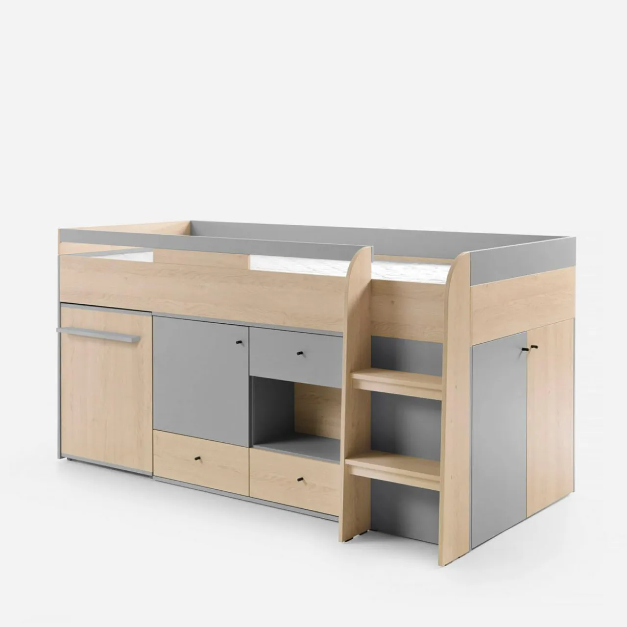 - Dzięki niskiej drabince Twoje dziecko z łatwością dostanie się do miejsca spania, a zabudowana forma zabezpieczy je przed upadkiem w nocy.