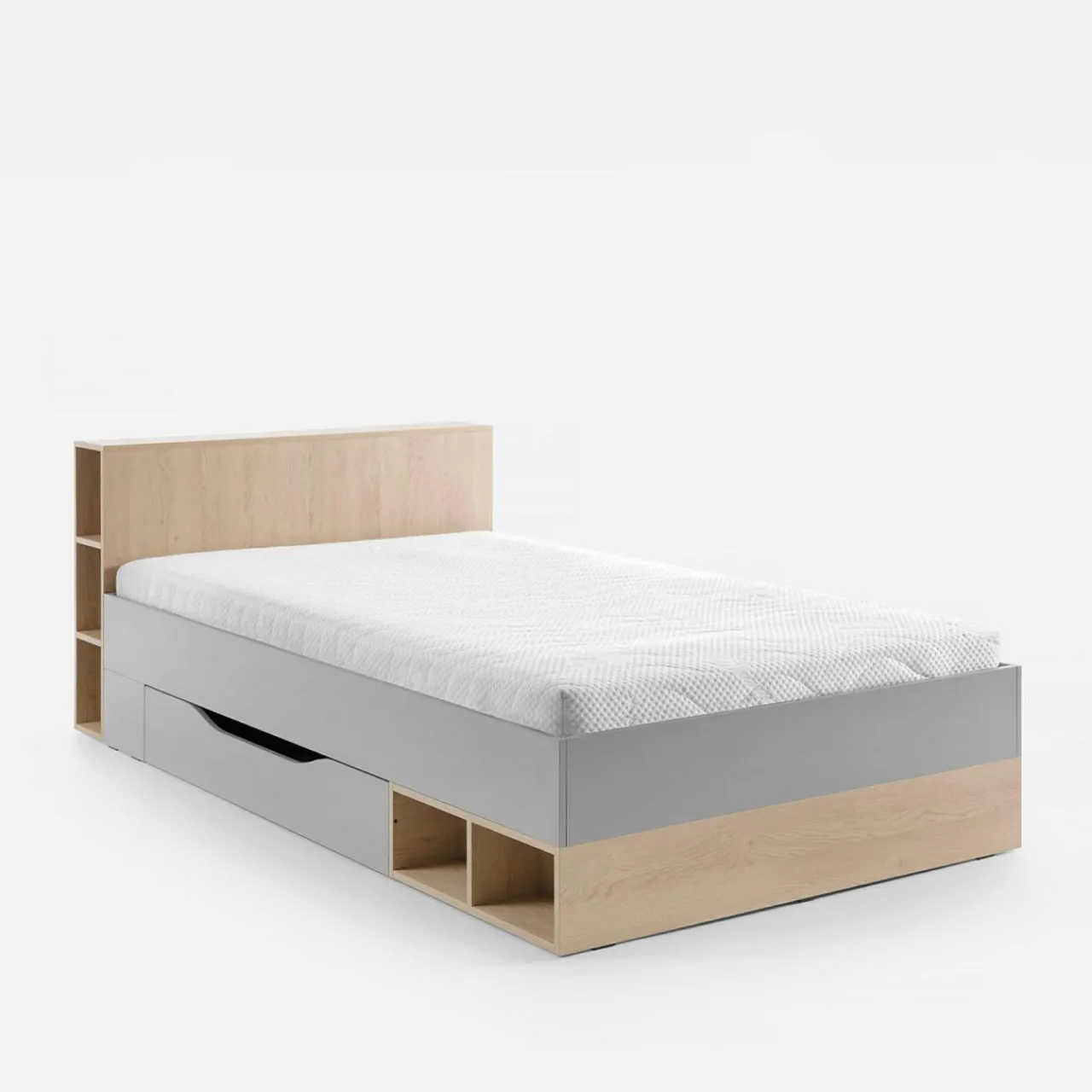Łóżko ORO posiada drobne półki w konstrukcji, które pomogą zaoszczędzić miejsce w pokoju.