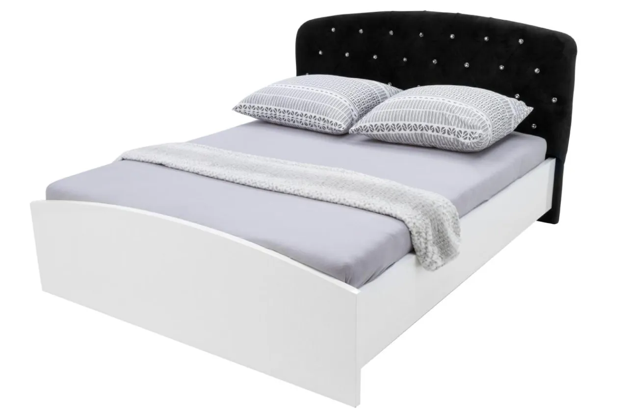 Elegancki pikowany zagłówek, z przyjemnej w dotyku welurowej tkaniny, nadaje łóżku luksusowy charakter. Boki oraz dolny szczyt łóżka zostały wykończone białym lakierem w połysku.