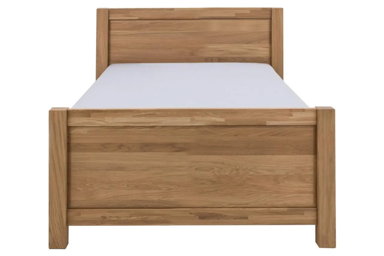 Łóżko zostało zabezpieczone jasnym olejem, który podkreśla naturalne piękno struktury drewna.