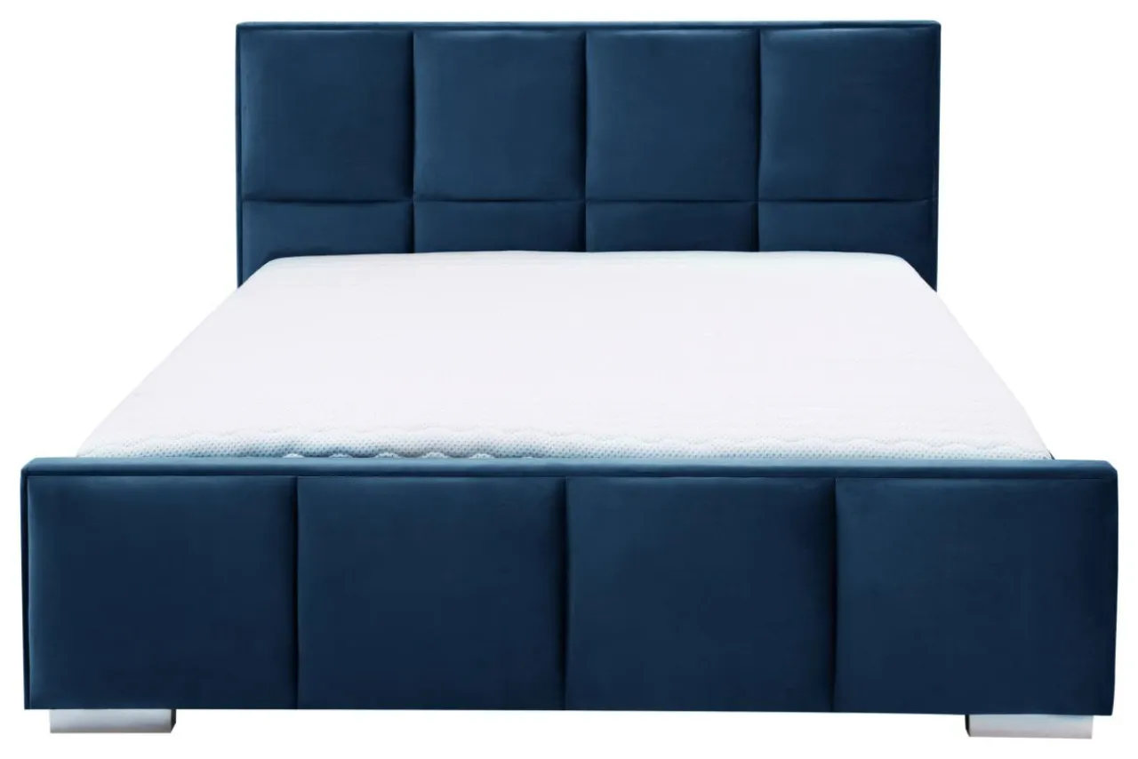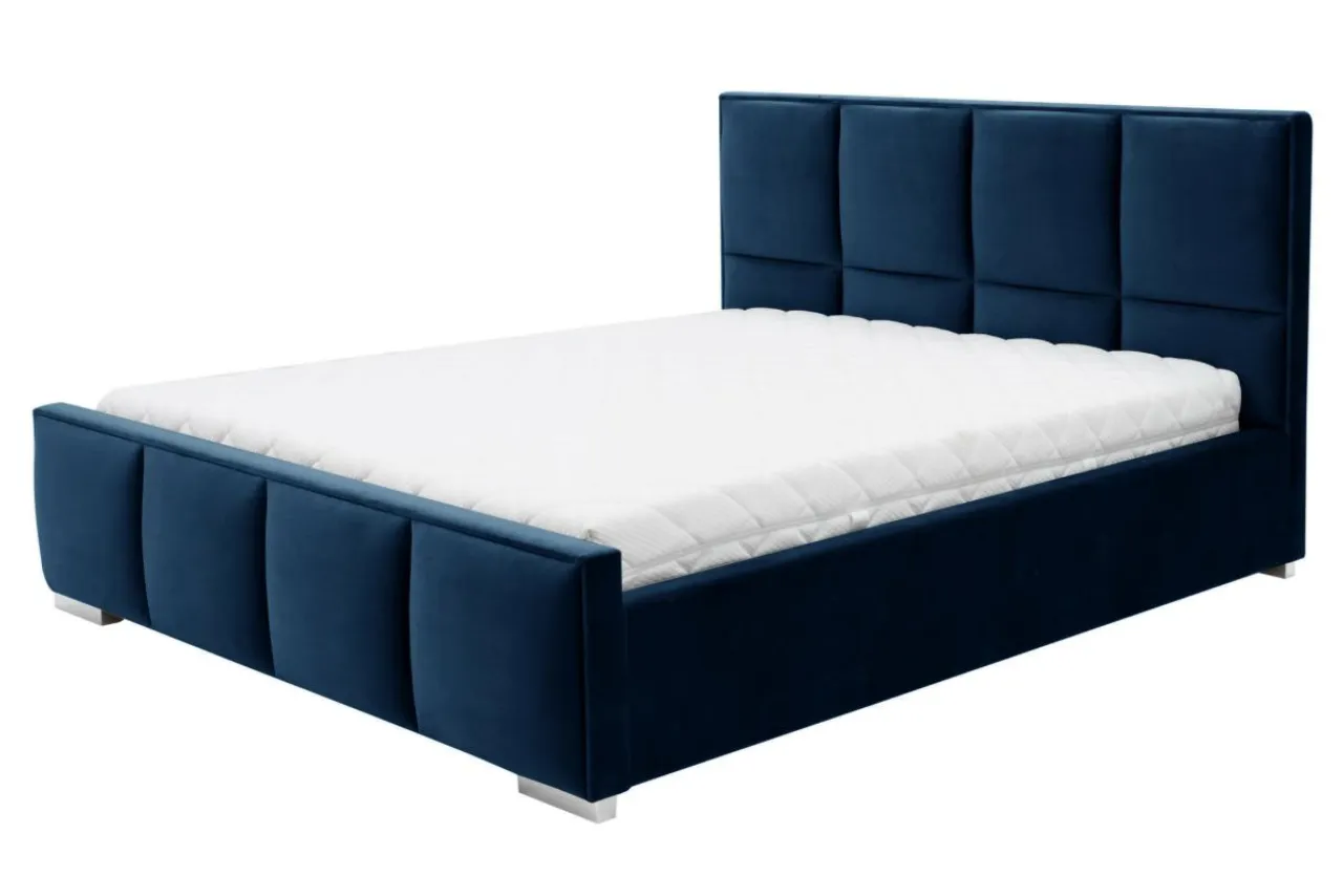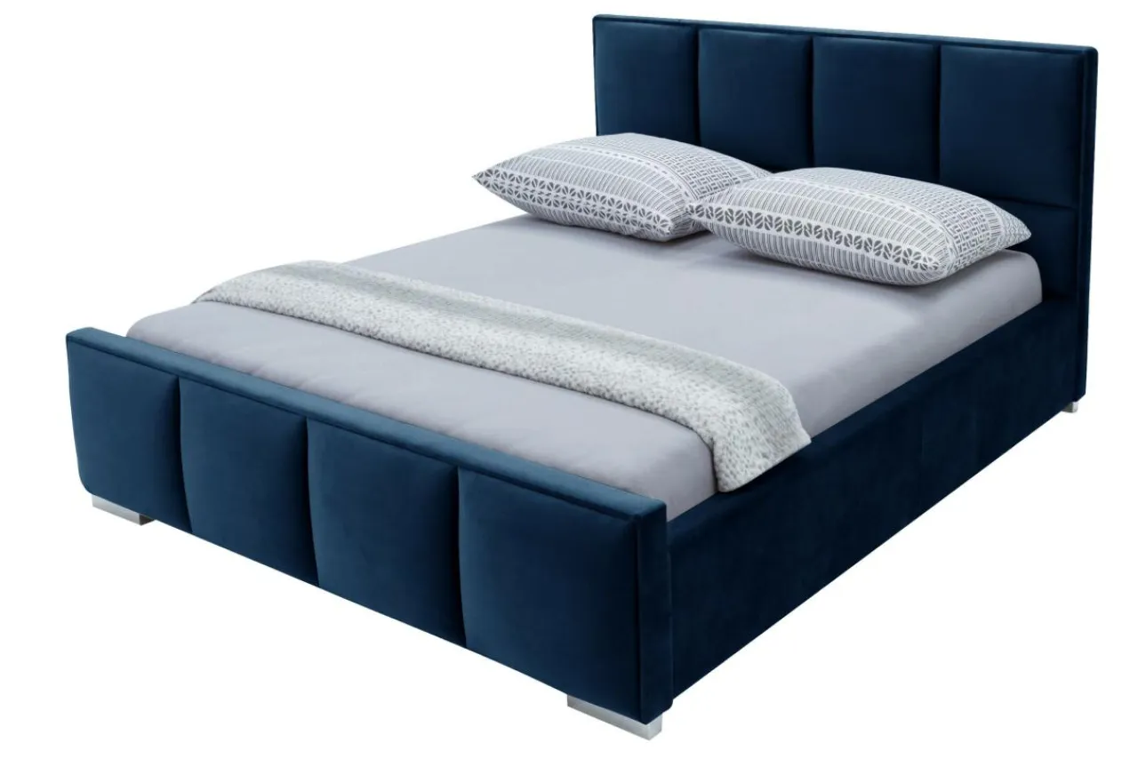 - Łóżko pokryte granatową tapicerką sprawi, że Twoja sypialnia będzie wyglądać bardzo elegancko.