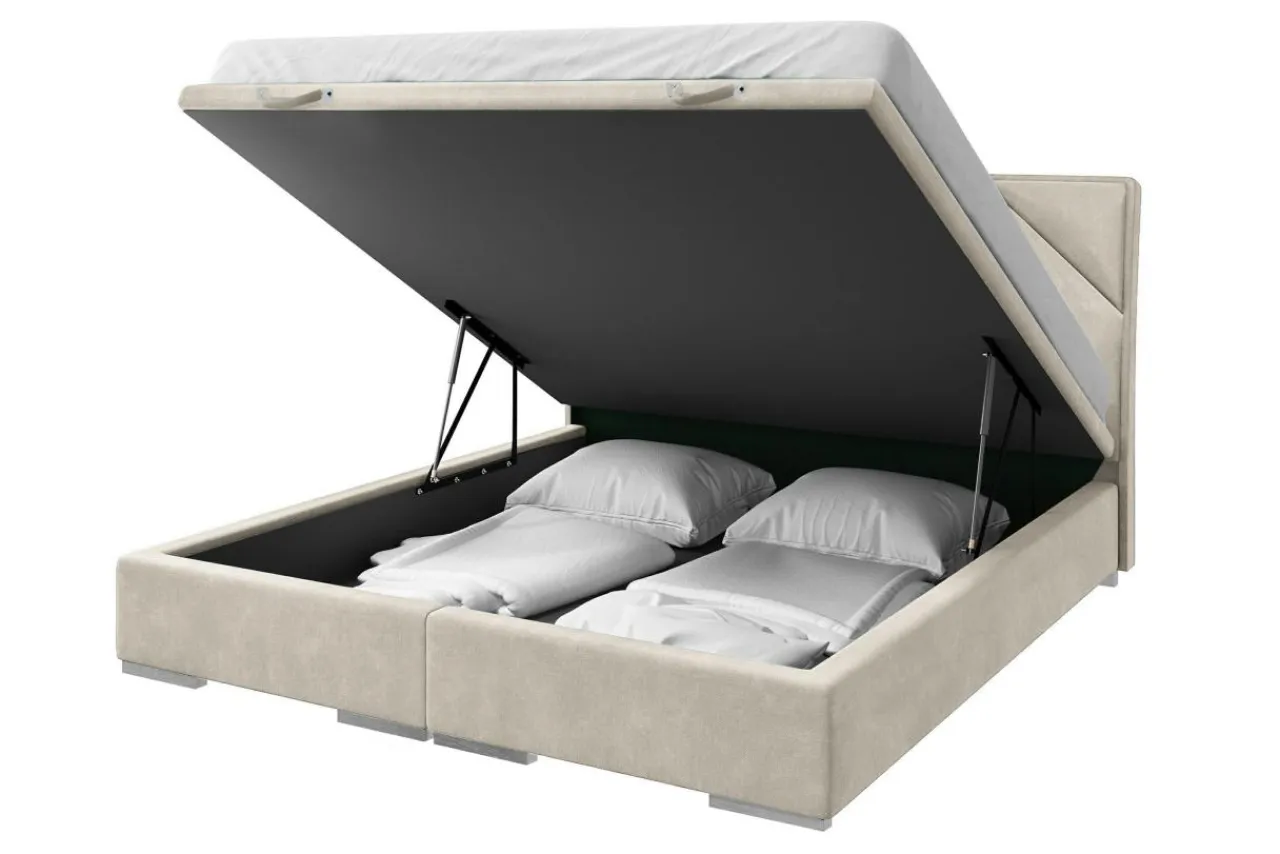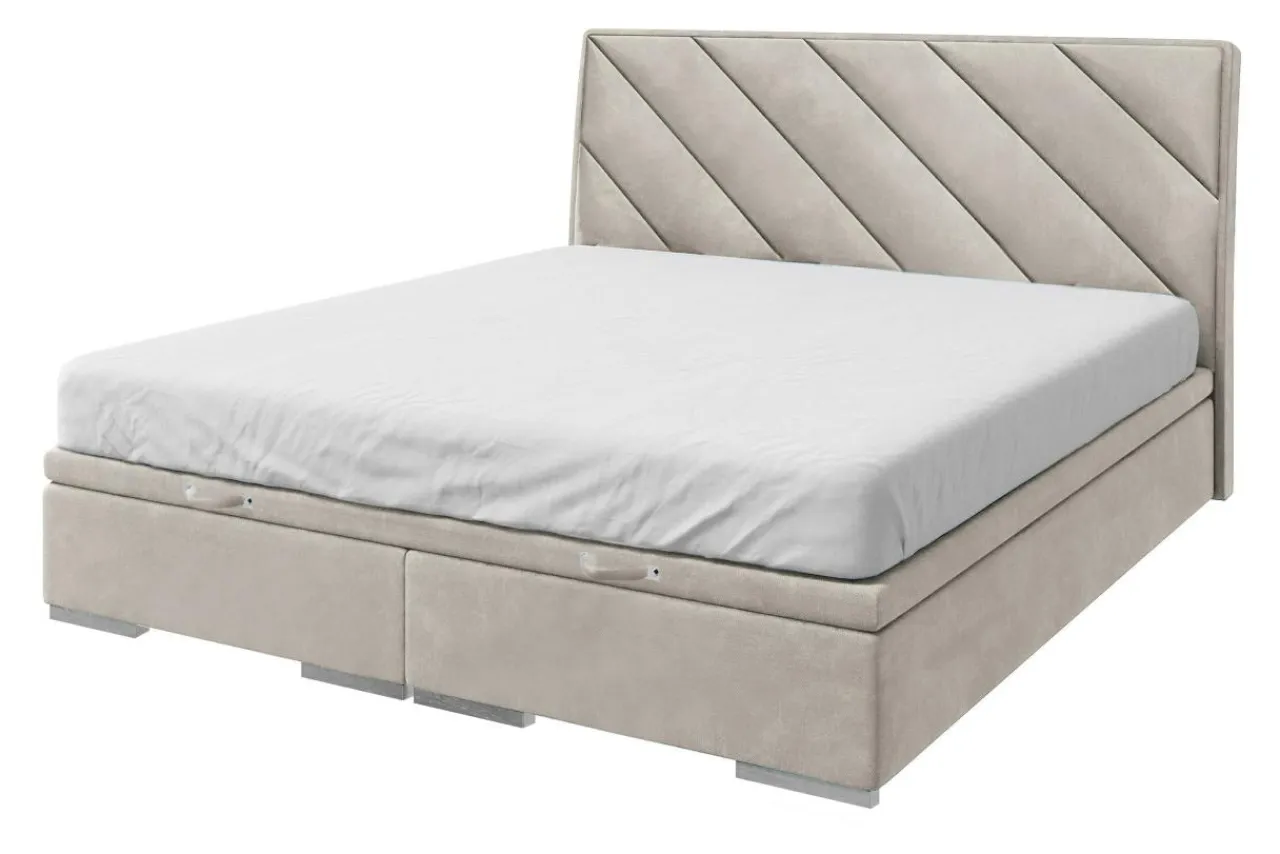 - Łóżko zostało wykończone tkaniną MAGIC VELVET w beżowym kolorze.