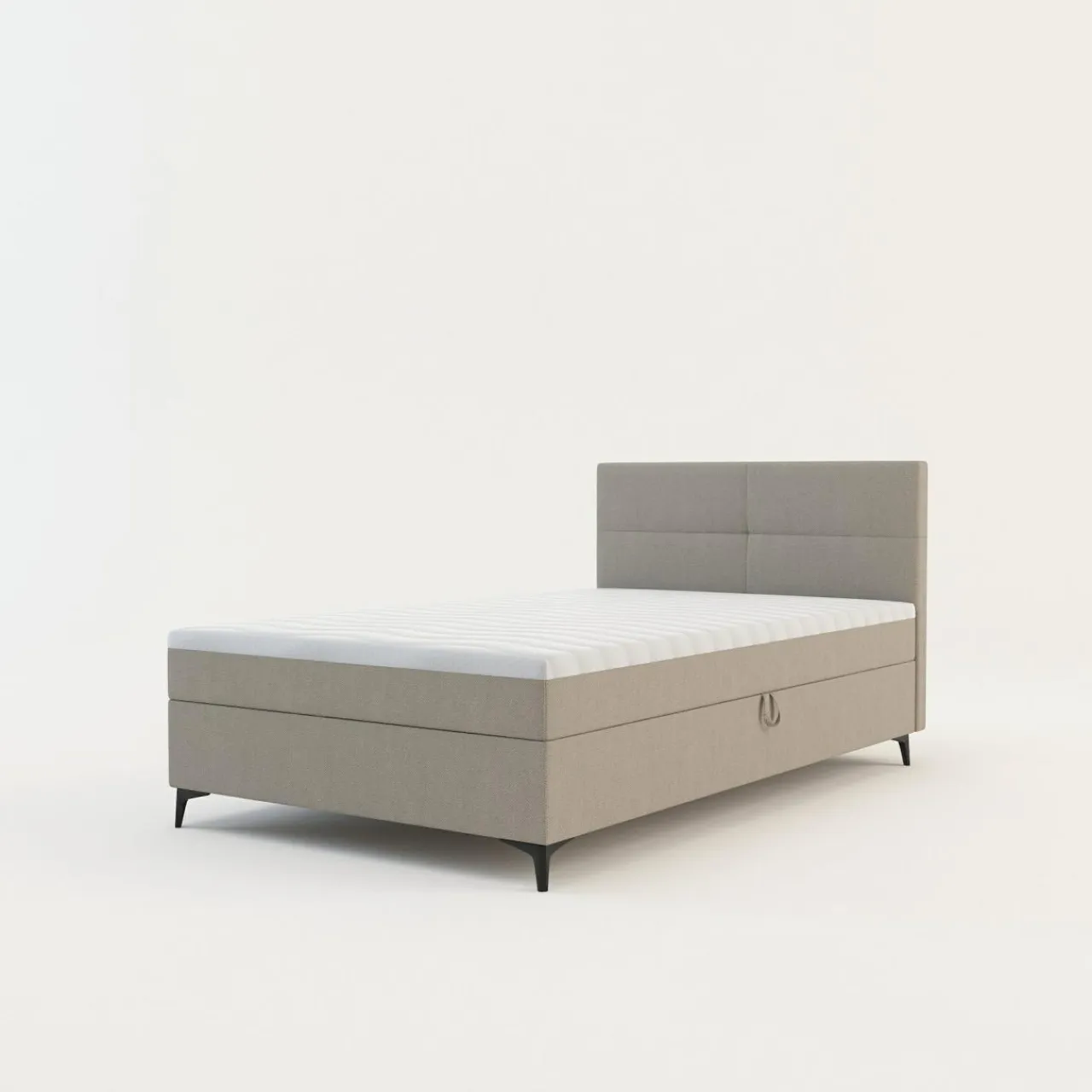 Beżowa tkanina, którą pokryto łóżko kontynentalne MARY wprowadzi do wnętrza kojącą atmosferę, która pozwoli Ci na głęboki oddech po zabieganym dniu.