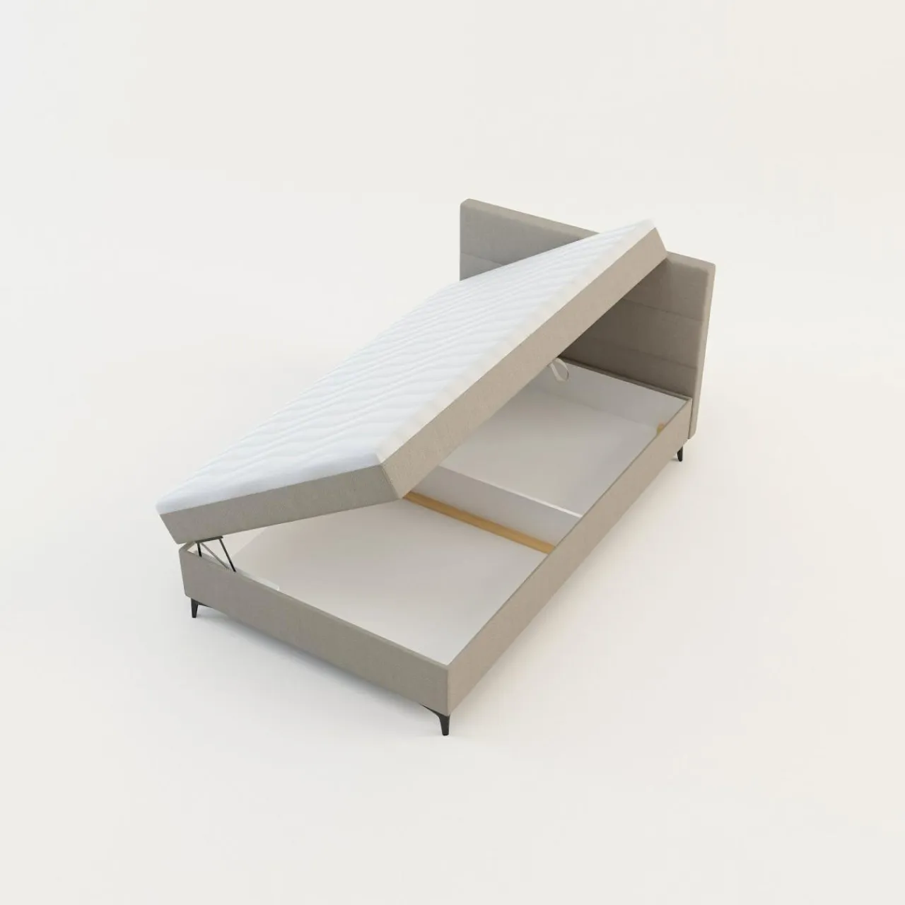 - Boki materaca zostały pokryte tą samą tkaniną co rama łóżka, przez co całość prezentuje się estetycznie.