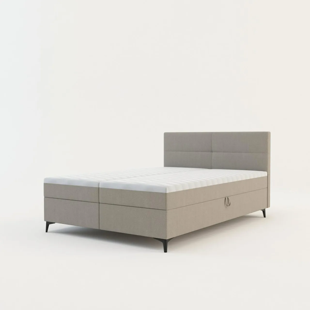 Beżowa tkanina, którą pokryto łóżko kontynentalne MARY wprowadzi do wnętrza kojącą atmosferę, która pozwoli Ci na głęboki oddech po zabieganym dniu.