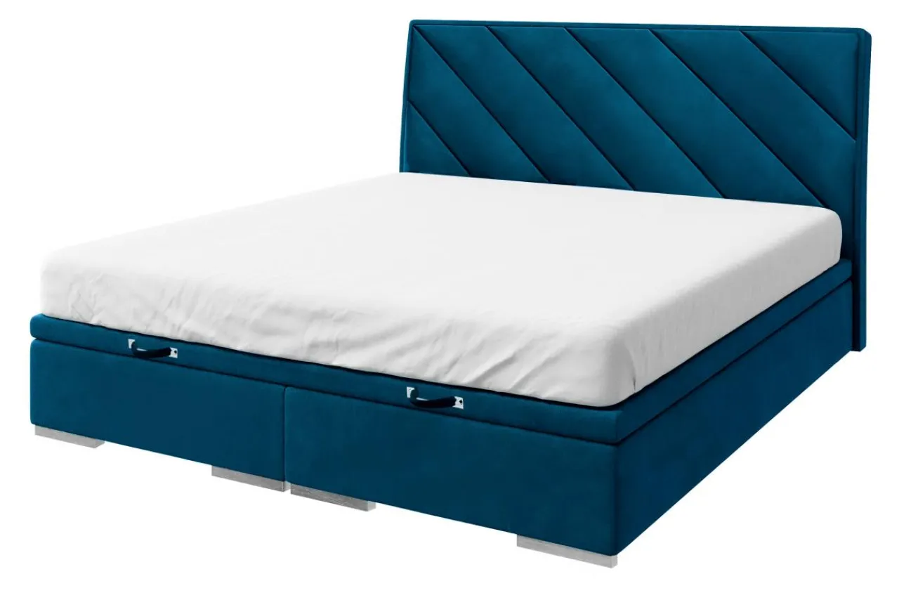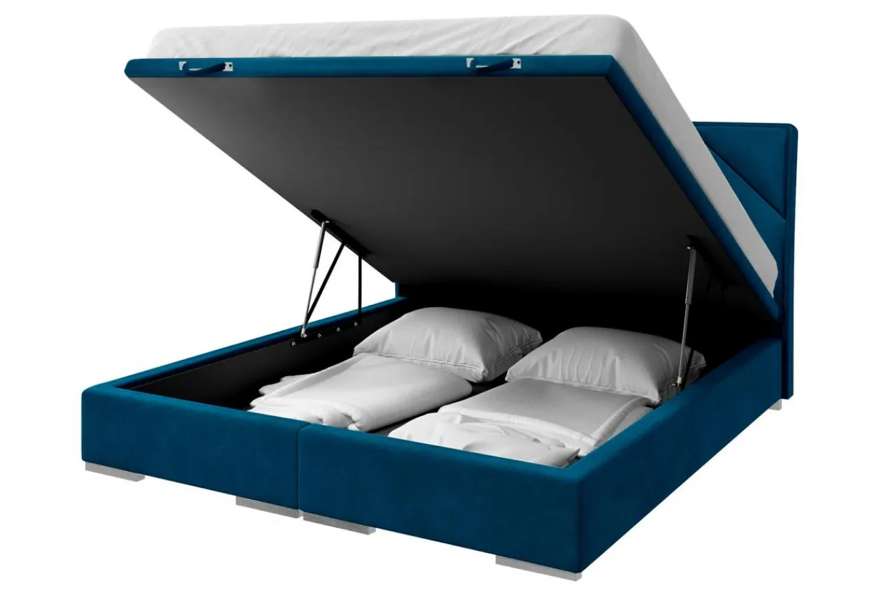 - Łóżko zostało wykończone tkaniną MAGIC VELVET w szafirowym granacie.