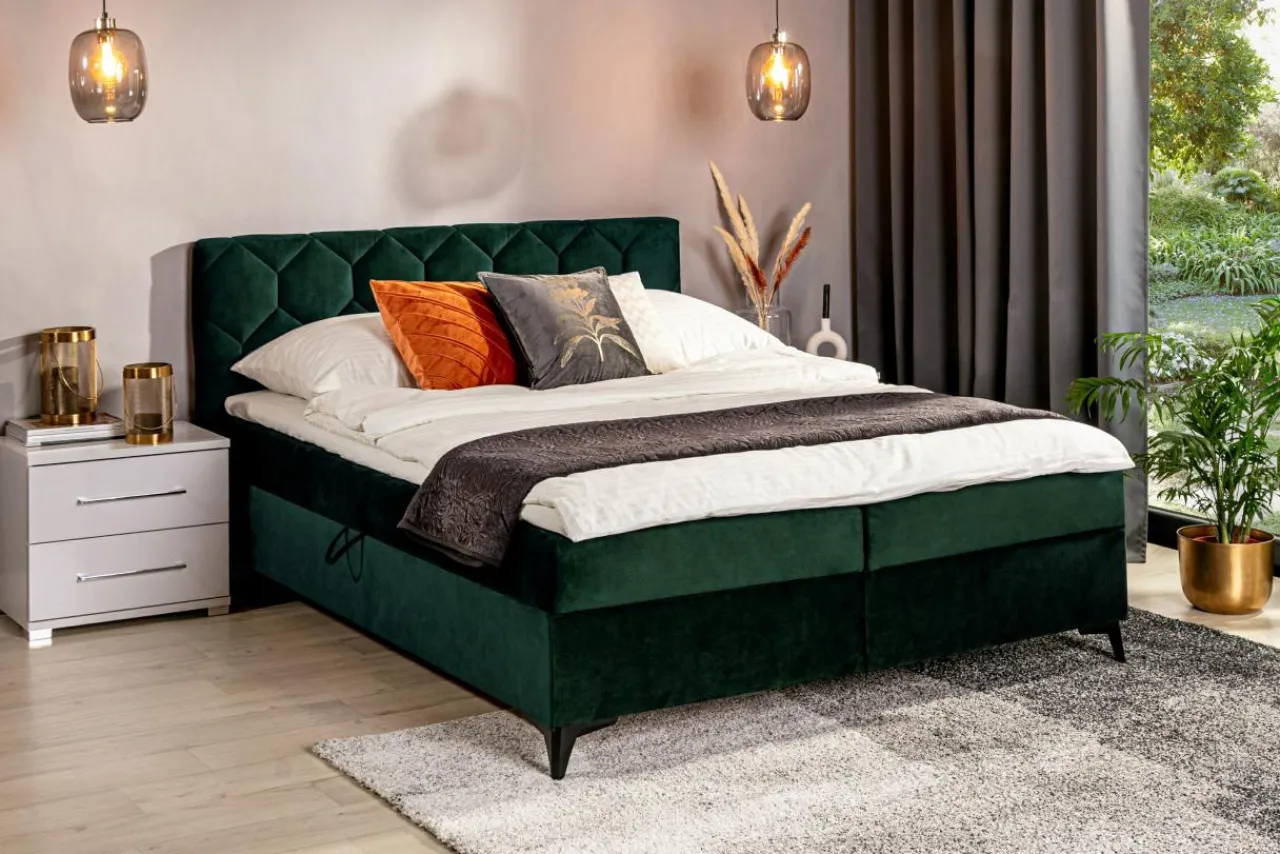 Łóżko tapicerowane w zielonym kolorze