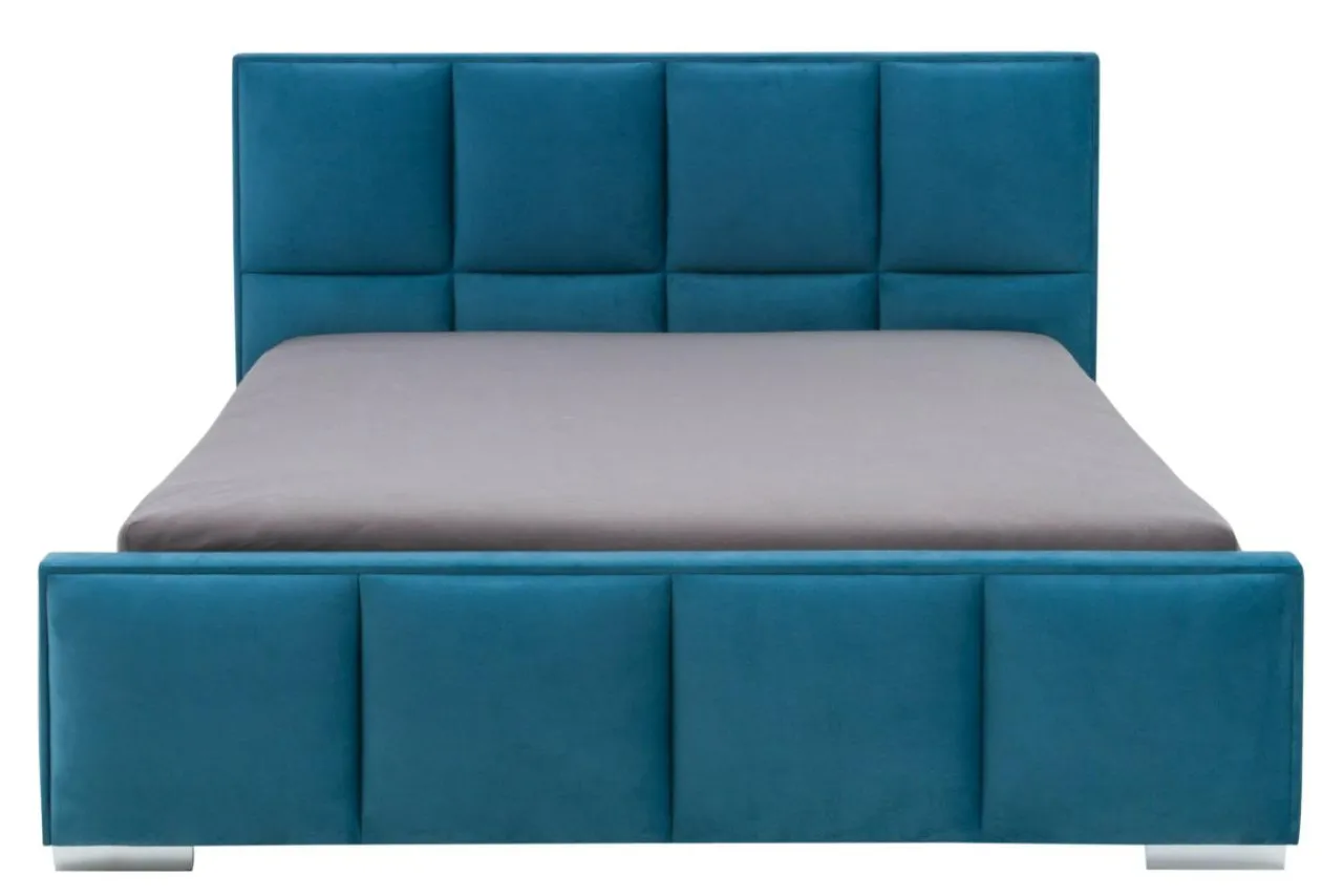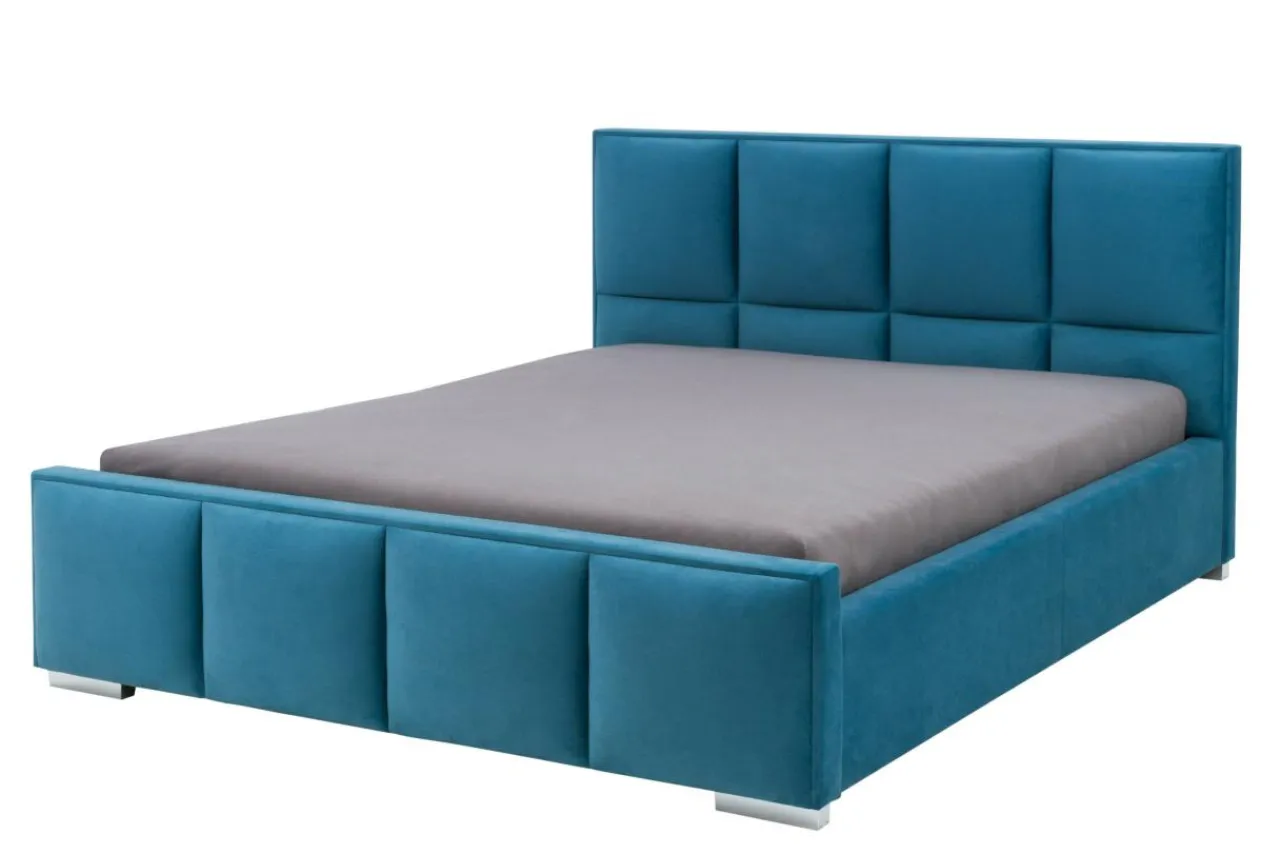 Łóżko FABRIZIO SQUERE sprawia iście królewskie wrażenie. Tapicerka w pięknym odcieniu błękitu oraz pikowanie pokrywające szczyty łóżka to detale nadające meblowi ekskluzywny wygląd. Wyposażone w stelaż i pojemnik na pościel, zapewnia komfort snu i wygodę.