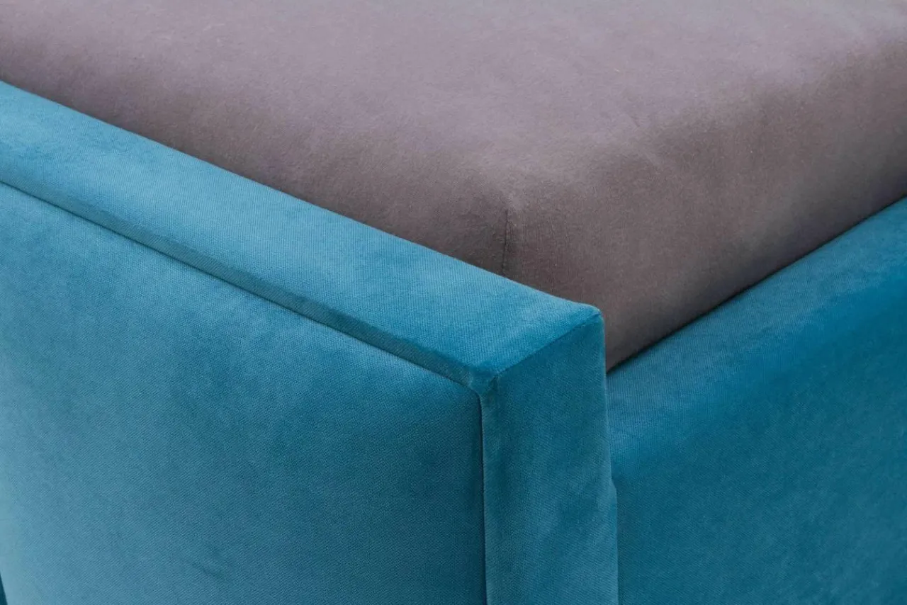 - Łóżko pokryto tkaniną AMORE w kolorze błękitnym o lazurowym odcieniu.
