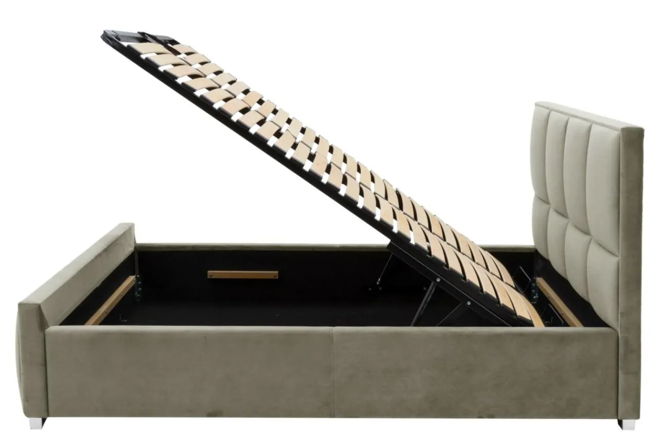 Wyposażone w stelaż i pojemnik na pościel łóżko zapewnia komfort snu i wygodę.