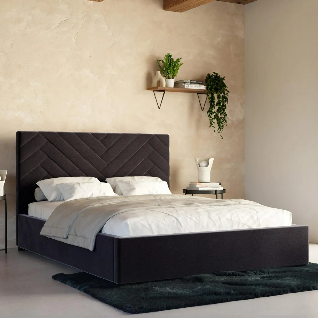 - Łóżko jest wyposażone w tapicerowaną ramę oraz stelaż, które stworzą komfortową powierzchnię spania dla 2 osób.