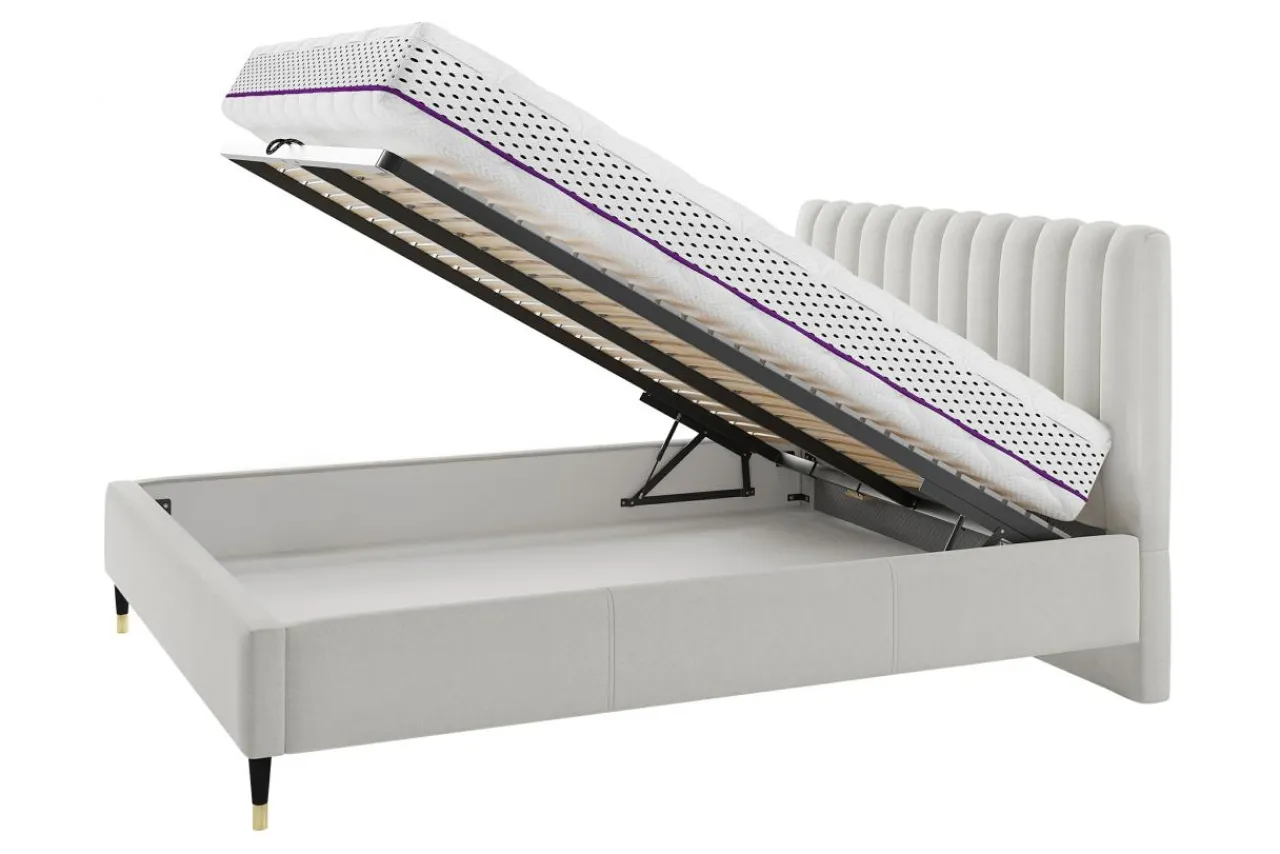 - Pod stelażem znajduje się pojemna skrzynia: wykorzystaj ją do przechowywania pościeli, koców lub innych tekstyliów.