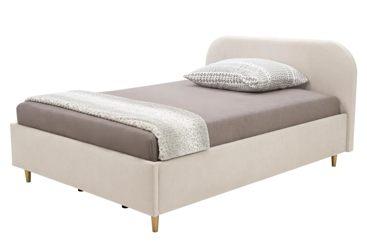 Duże wezgłowie i nogi w kolorze złotym prezentują się elegancko, a kremowe obicie doda przytulności Twojej sypialni.