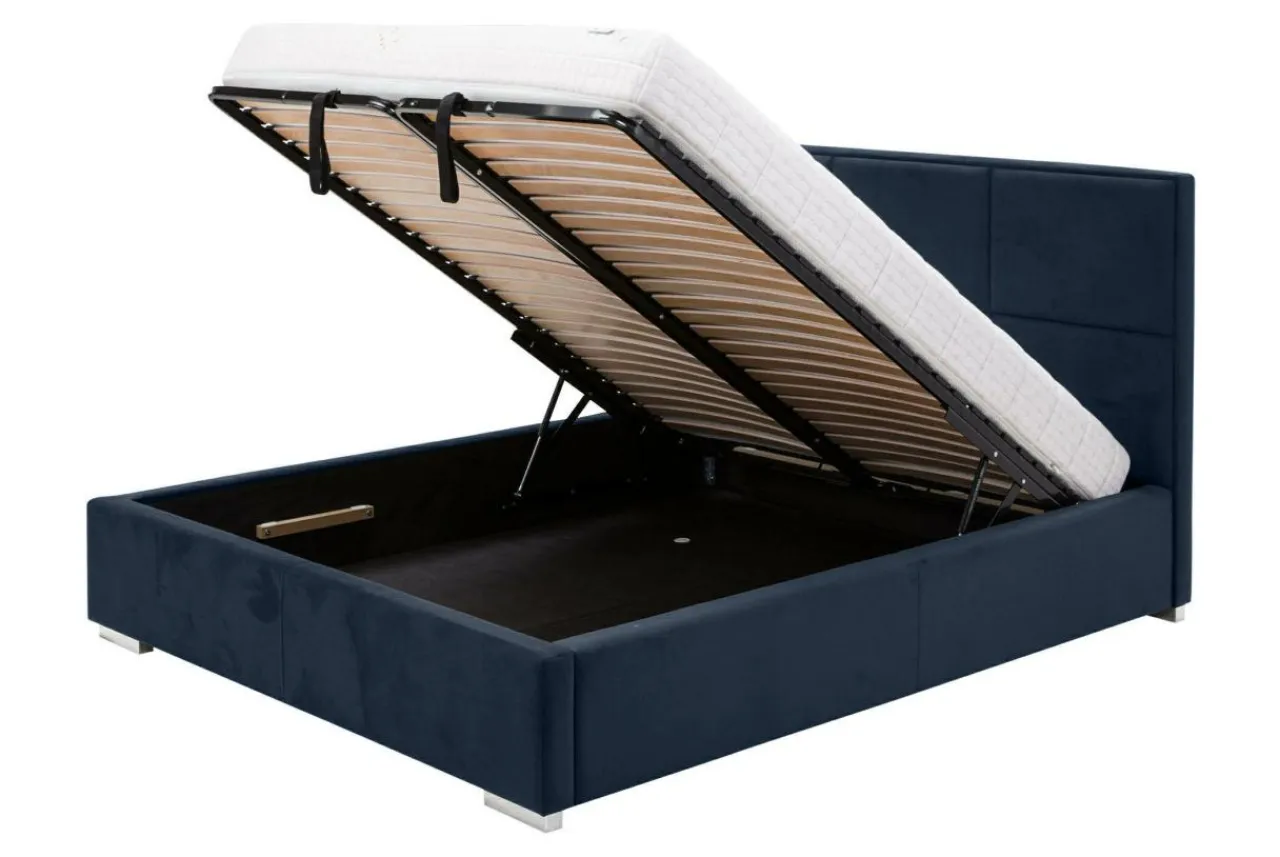 Łóżko wyposażono w praktyczny pojemnik na pościel, znajdujący się pod stelażem.