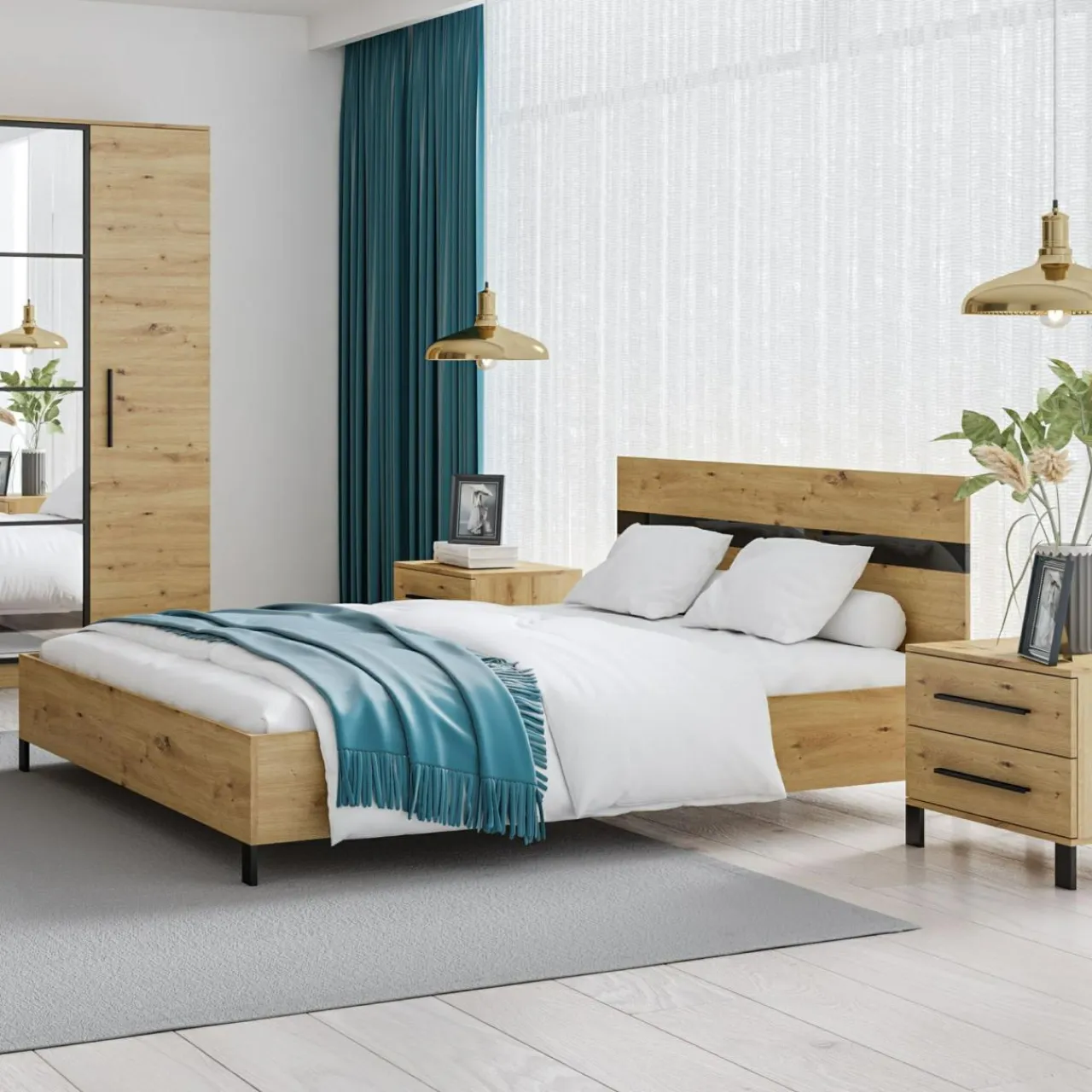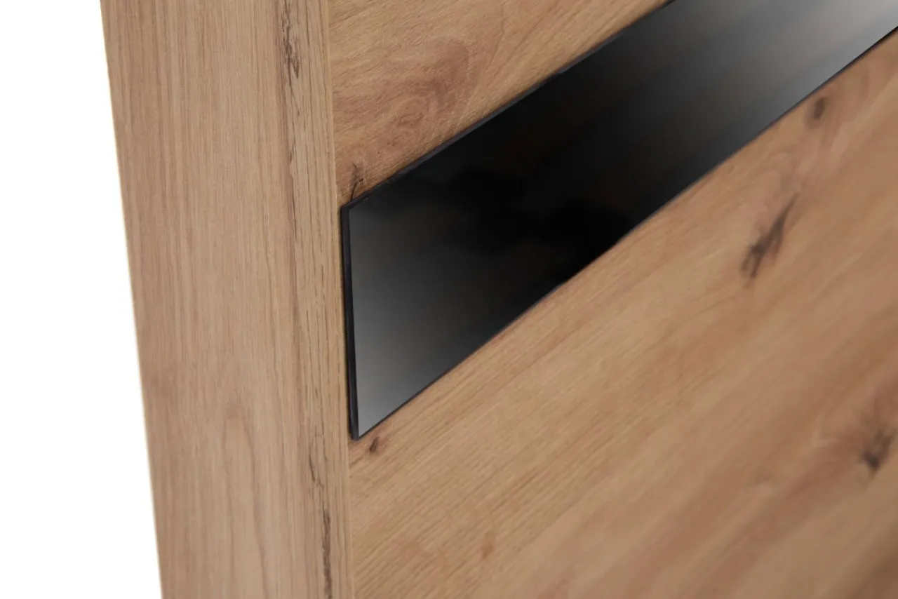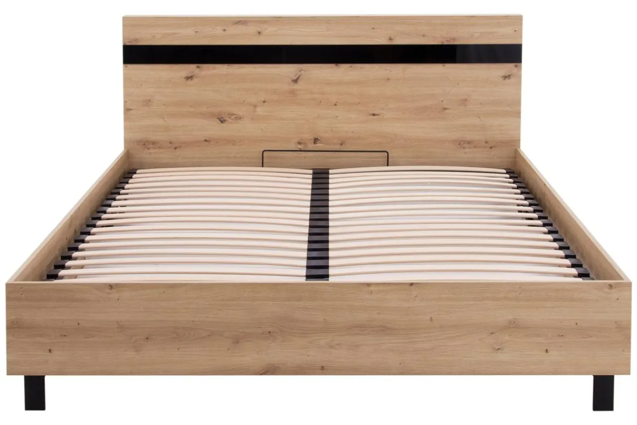 - Ramę łóżka wykonano z płyty meblowej pokrytej laminatem w odcieniu dębu artisan.