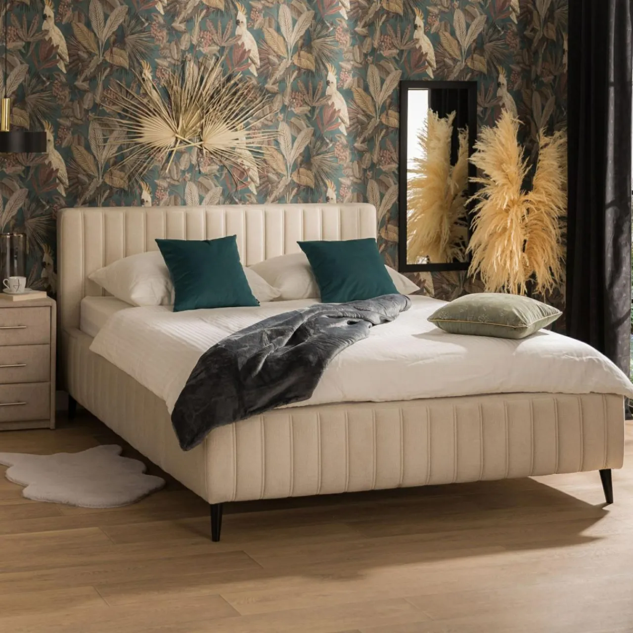 Jeżeli tak, to łóżko MAGGIE FULL z wysokim, welurowym zagłówkiem wpasuje się w Twoją sypialnię.